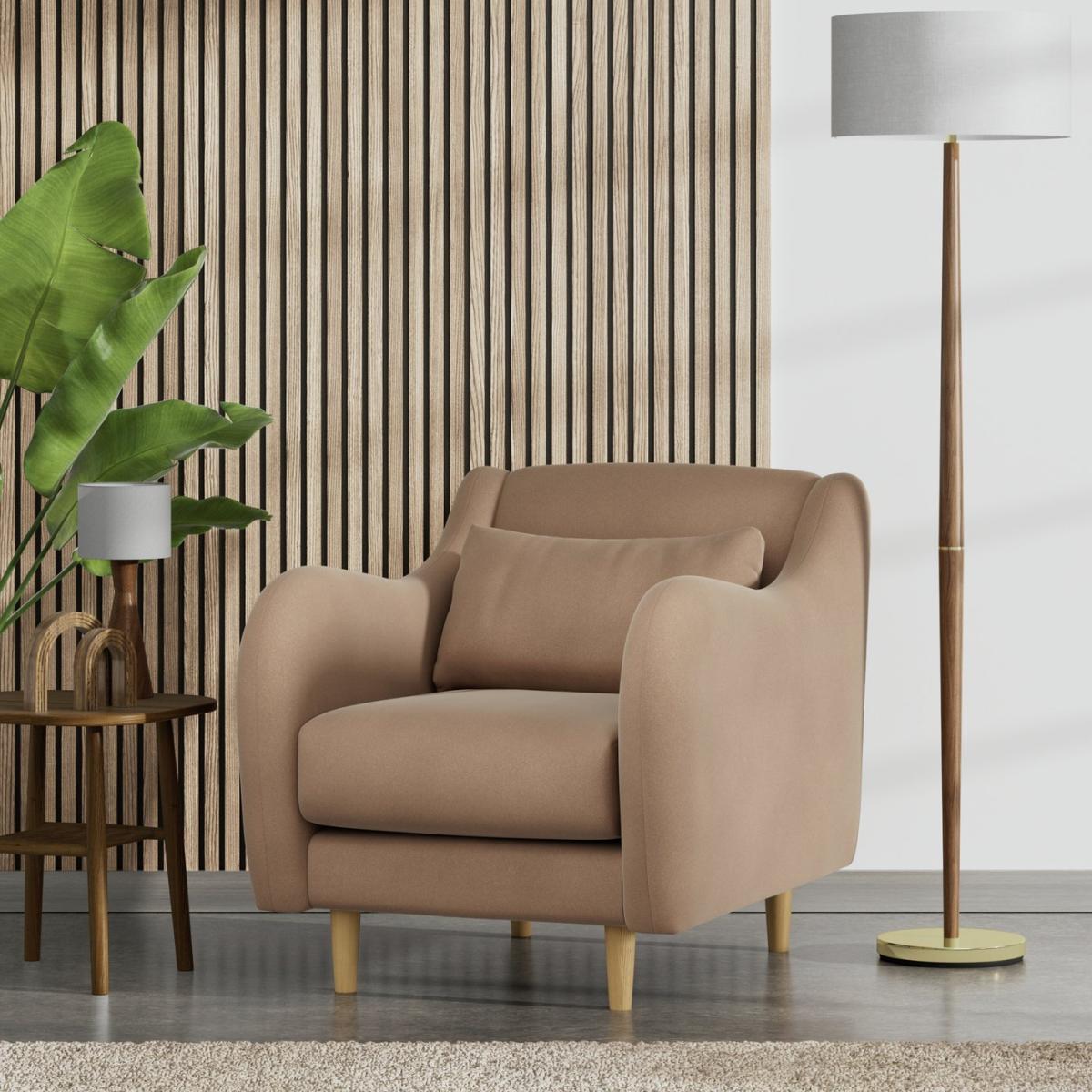When it's made for you, you know you'll love it. The Turnmill is a highly desirable Habitat designed armchair. From the side, the ARM rest's free flowing lines are a nod to mid-century curves. And check out the extra cushion factor. Nestling against the gently reclining back are lumber supporting bolsters to relax into. In a rich velvet, the Turnmill takes on a luxe look. An aesthetically pleasing, comfortably inviting armchair. Offering a more supportive seat, the Turnmill's cushions use high density foam core wrapped in fibre wadding to create the perfect balance of support, durability and recovery. Handmade to order in the UK. The Turnmill uses quality materials and traditional techniques for furniture that's unique to you. Available in a choice of sizes and fabrics including Aquaclean technology protection built into the yarn, which is easy to clean with just water. Part of the Turnmill collection. Material: Made from 100% recycled polyester. Wooden feet. Removable seat with foam fibre wrap filling. Removable cushion(s) with foam fibre wrap filling. Dimensions: Size H84, W77, D99cm. Floor to seat height: 49cm. Depth of seat: 53cm. Height of seat back: 49cm. Width of seating area between arms: 55cm. Height of ARM rest: 76cm. Weight: 35kg. Packaged dimensions: Package size H89, W82, D104cm. General information: Your seat cushions may feel a little firm on delivery, they are brand new and will soften with regular use over the next few months. We do more than deliver your product, we unpack, set it up and take away the packaging. Manufactured in the UK using components sourced globally. Professional clean only. Plump cushions regularly to maintain shape. Manufacturer's 15 year frame guarantee.