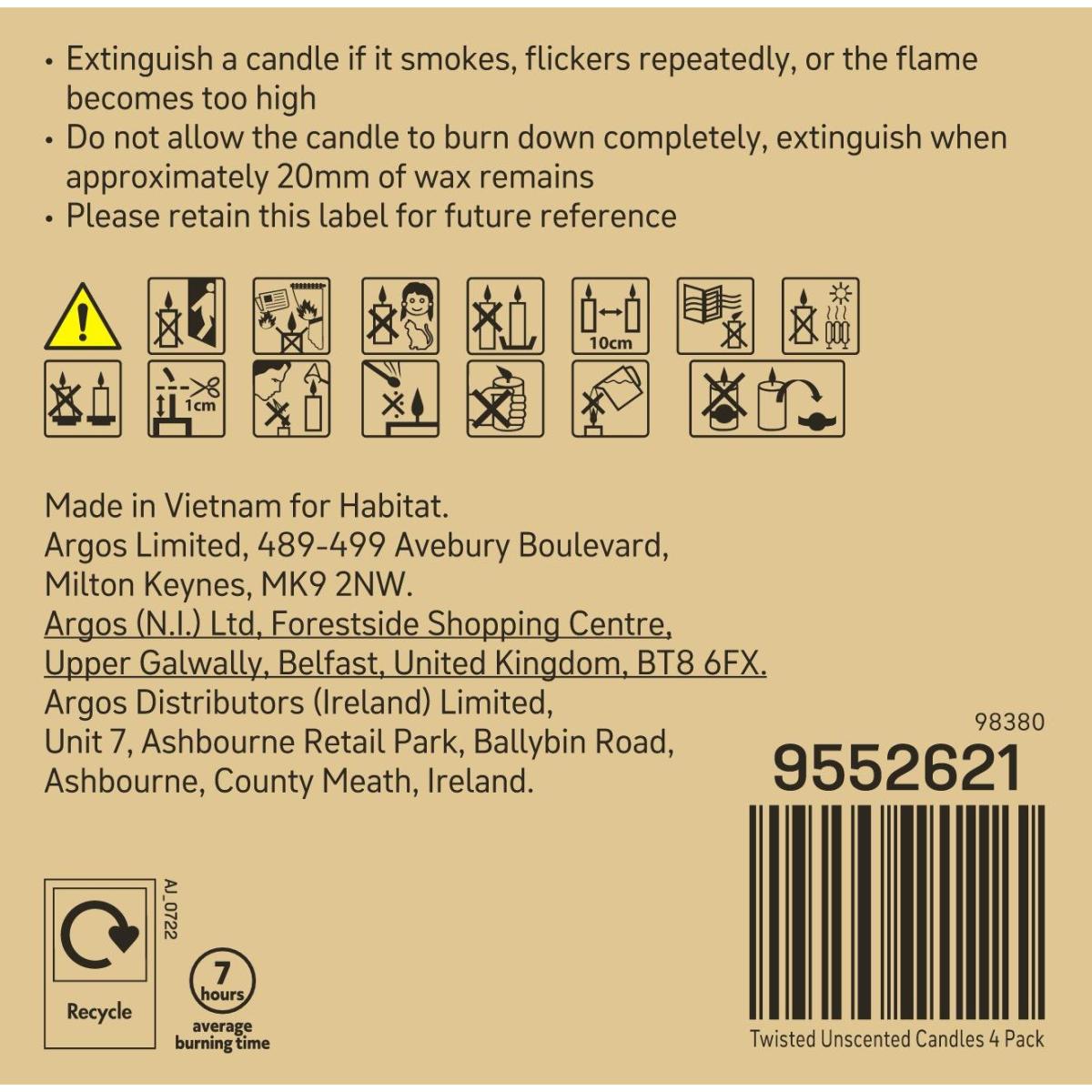 Habitat Twisted Taper Candles - Unscented - Pack of 4