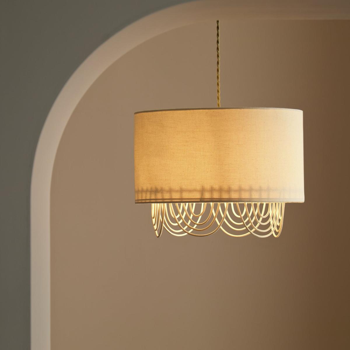 I love this pendant because of its versatile, understated style. The scallop design adds just a touch of texture, making it a great option for both contemporary and more traditional settings. Its neutral hue makes it easy to pair with various colour schemes and colour accents. A two-tier design offers a good diffusion of light, ideal for providing gentle ambient illumination without overwhelming a space. It's particularly effective in dining rooms, living areas, or bedrooms with neutral or pastel palettes. Practical tips include placing it centrally over a dining table or sitting area to create focus, or hanging multiple for a layered lighting effect in larger rooms. This shade's simplicity makes it a reliable styling addition that can easily blend into different interiors while still offering a contemporary touch.