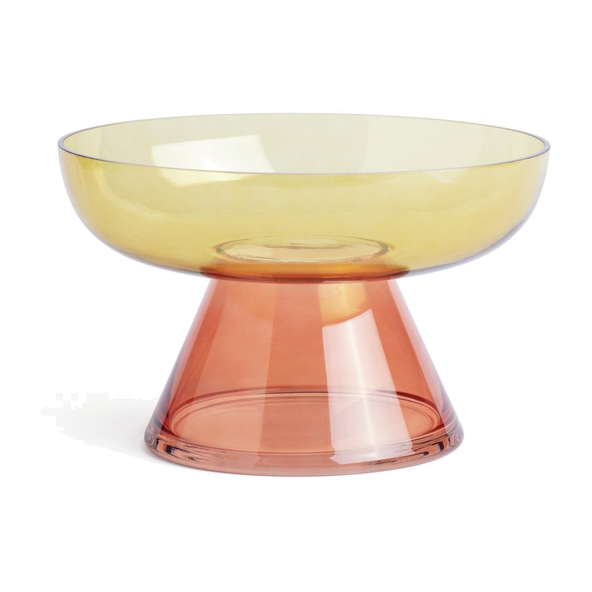 Prepare to be bowled over. Our contemporary glass bowl is striking and sophisticated. Featuring a tapered base and smooth, rounded rim, its modern shape is beautifully bold. Crafted from two-tone tinted glass in orange and yellow, it brings a vibrant pop to a mantle or sideboard. Fill with fruit, candles or enjoy as a standalone piece. Curvy, cool and colourful. Love a lively look? Match with more bright pieces in our Collection. Size H15.7, W25, D25cm.