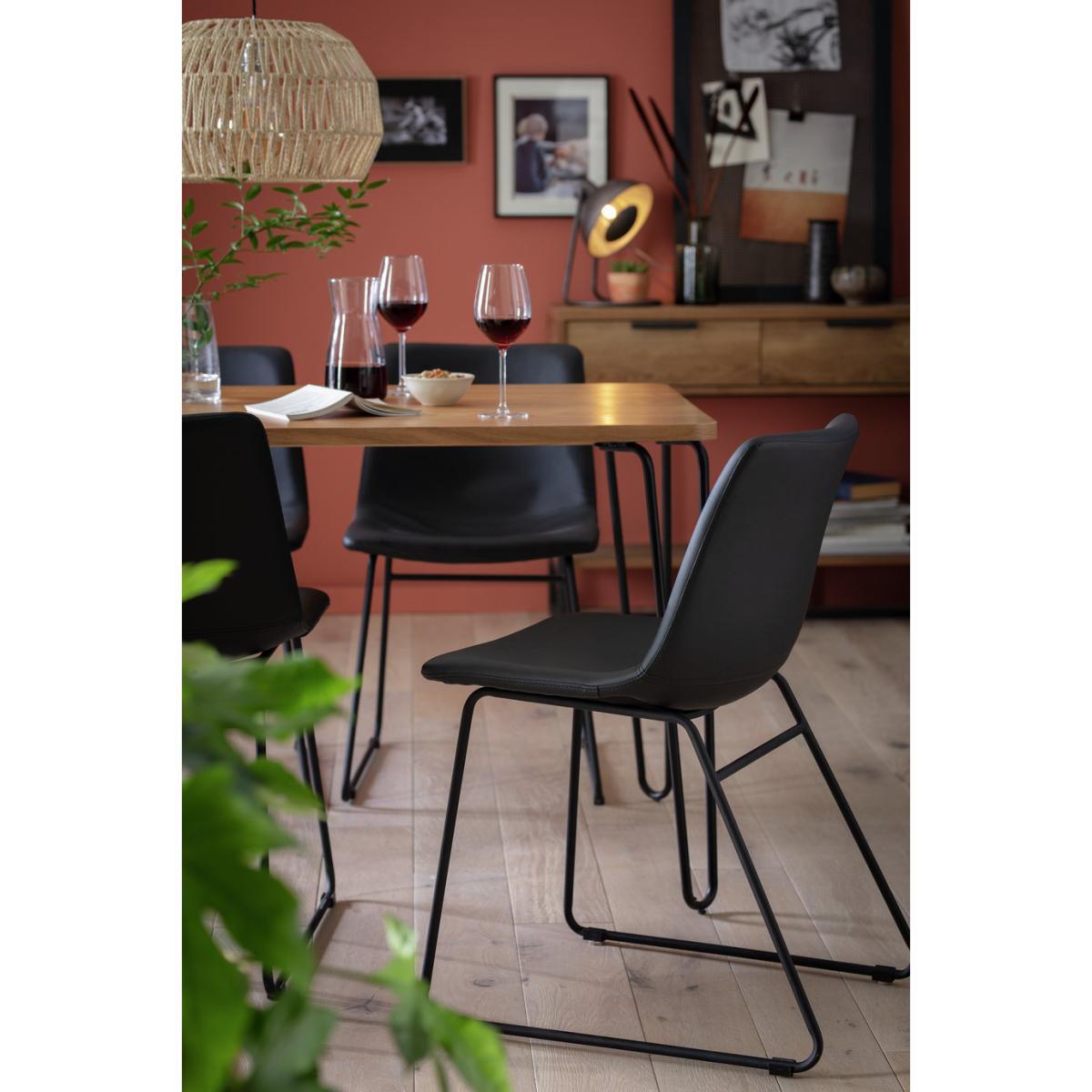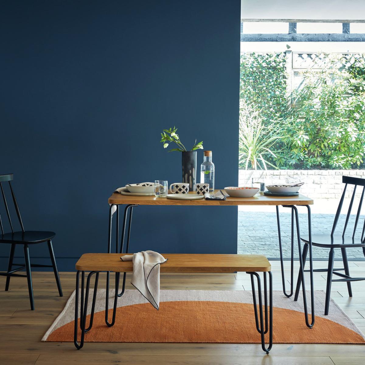 I love this table for its sleek, modern design that effortlessly combines natural timber with bold black metal, making it a versatile piece for various interiors. It works particularly well in Scandi-inspired or minimalist spaces, adding warmth without overwhelming the room. To style it effectively, consider pairing it with contemporary or vintage chairs to create a relaxed yet polished look. Practical tips include using a centre runner or a set of statement placemats for added texture, and keeping accessories simple to highlight the table’s clean lines and natural wood finish. It’s a great choice for those who want a functional dining area with a touch of understated style.