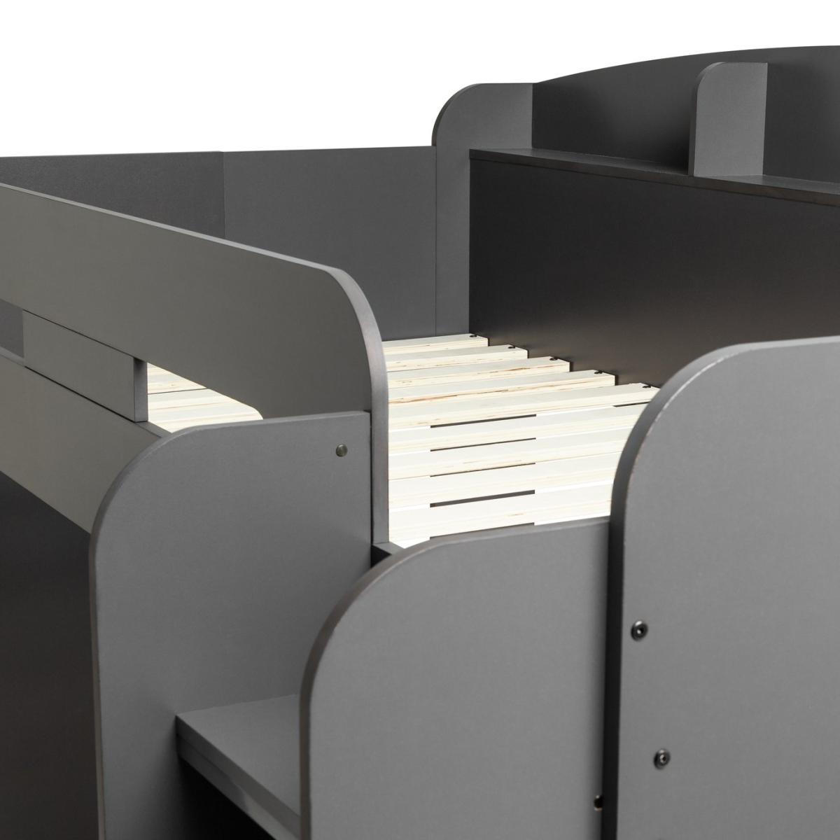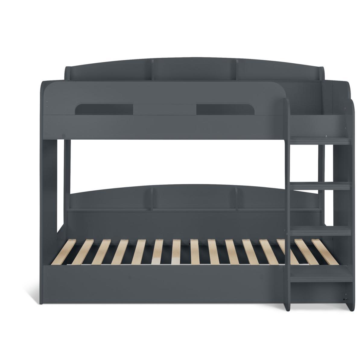 I love this bed for its practical yet modern design, making it a great fit for contemporary children's bedrooms. Its grey finish is versatile, working well in neutral schemes, or adding a subtle contrast in rooms with colourful décor. The bunk's sturdy structure and integrated storage options make it functional for families looking to optimise space-perfect for smaller bedrooms. Styling tips include adding playful textiles and cushions in vibrant hues or patterns to bring personality to the grey frame. You could also enhance the look with smart wall-mounted shelving or colourful accessories around the bed to create a cosy, inviting space without clutter. Overall, it’s a stylish, space-efficient choice suitable for a range of interiors.