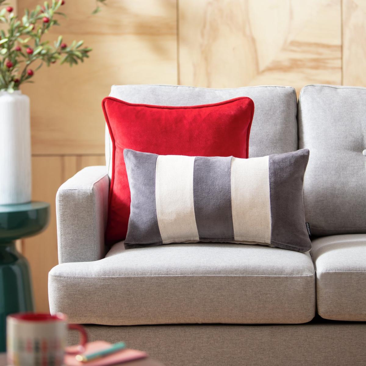 Our fun-loving cool charcoal striped cushion will transport you straight into summer. Bright and fresh, in soft, cotton-rich velvet, it adds a touch of Skandi style. The perfect sofa accessory. Happy days. Zip fastening. Cover 85% Cotton, 15% Velvet. Filling 100% Recycled polyester. Size L50, W30cm. This cover is machine washable.