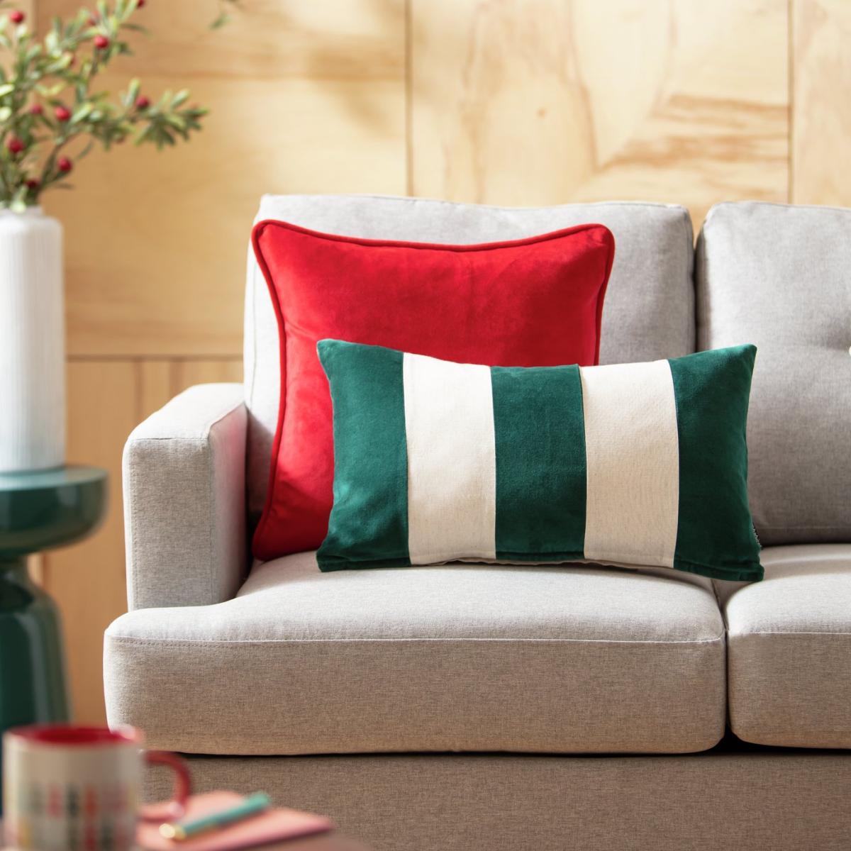 Our fun-loving deep teal striped cushion will transport you straight into summer. Bright and fresh, in soft, cotton-rich velvet, it adds a touch of Skandi style. The perfect sofa accessory. Happy days. Zip fastening. Cover 85% Cotton, 15% Velvet. Filling 100% Recycled polyester. Size L50, W30cm. This cover is machine washable.