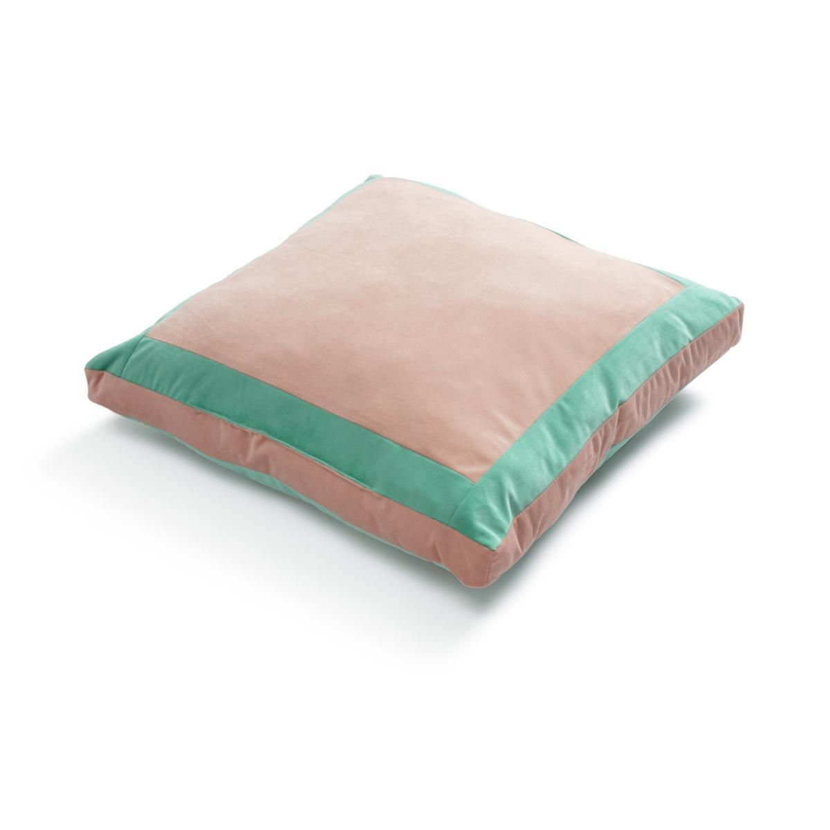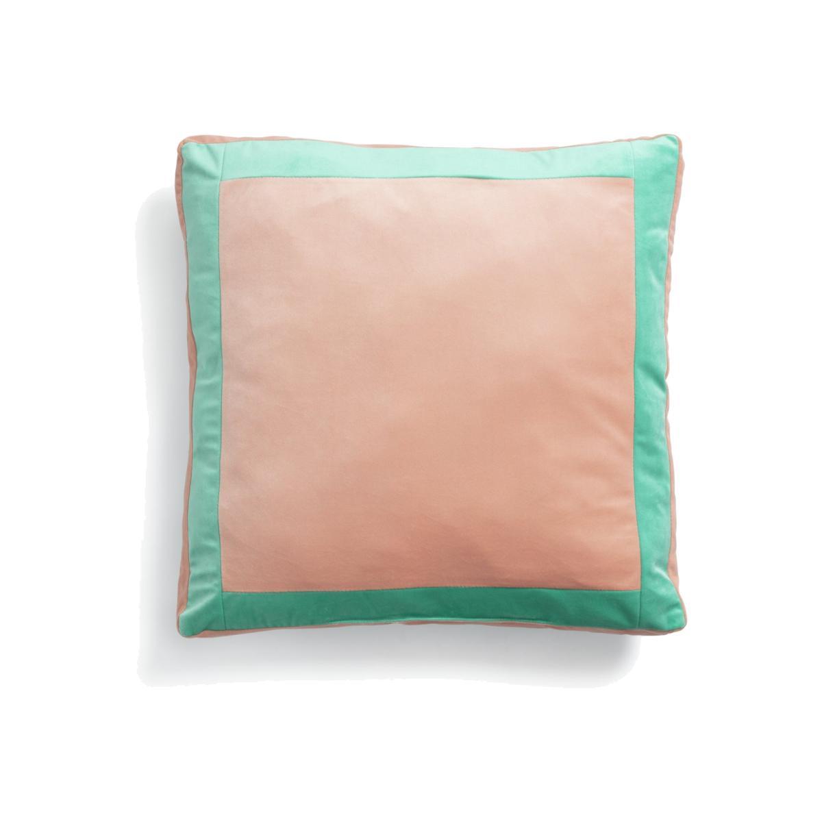Anyone for ice cream? A delicious mint green and peach colour combo give this lovely, luxe cushion a real 30s feel. Soft velvet and geometric panels add an understated elegance perfect for a relaxing living room refresh. Style these generous 50x50cm cushions with muted pinks, shots of emerald green and lush foliage. Mouth-watering. These tactile cushions would also look fabulously inviting matched with rattan style furniture in a garden room or conservatory. Fully sewn and stuffed cushion. Non-removable cover. Cover 1% polyester. Filling 1% polyester. Size L50, W50cm. This cover is dry clean only.