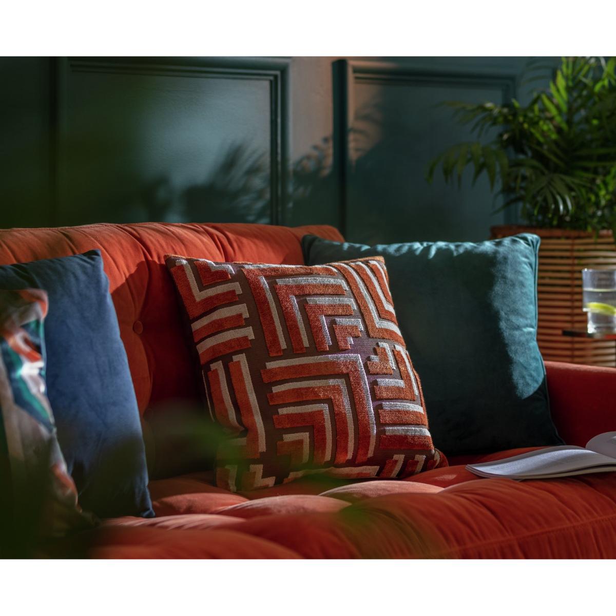 Unapologetically bold. Our carved geo cushion is made for adding unmissable drama to your sofa, chairs, or bed. The sculptured geometric shapes bring a textured edge to the rich velvet fabric. Irresistibly plush and deliciously plump. Even the intense colours are warmly inviting. And the zip off cover means it's easy to keep it looking its best. Go on, be brave.