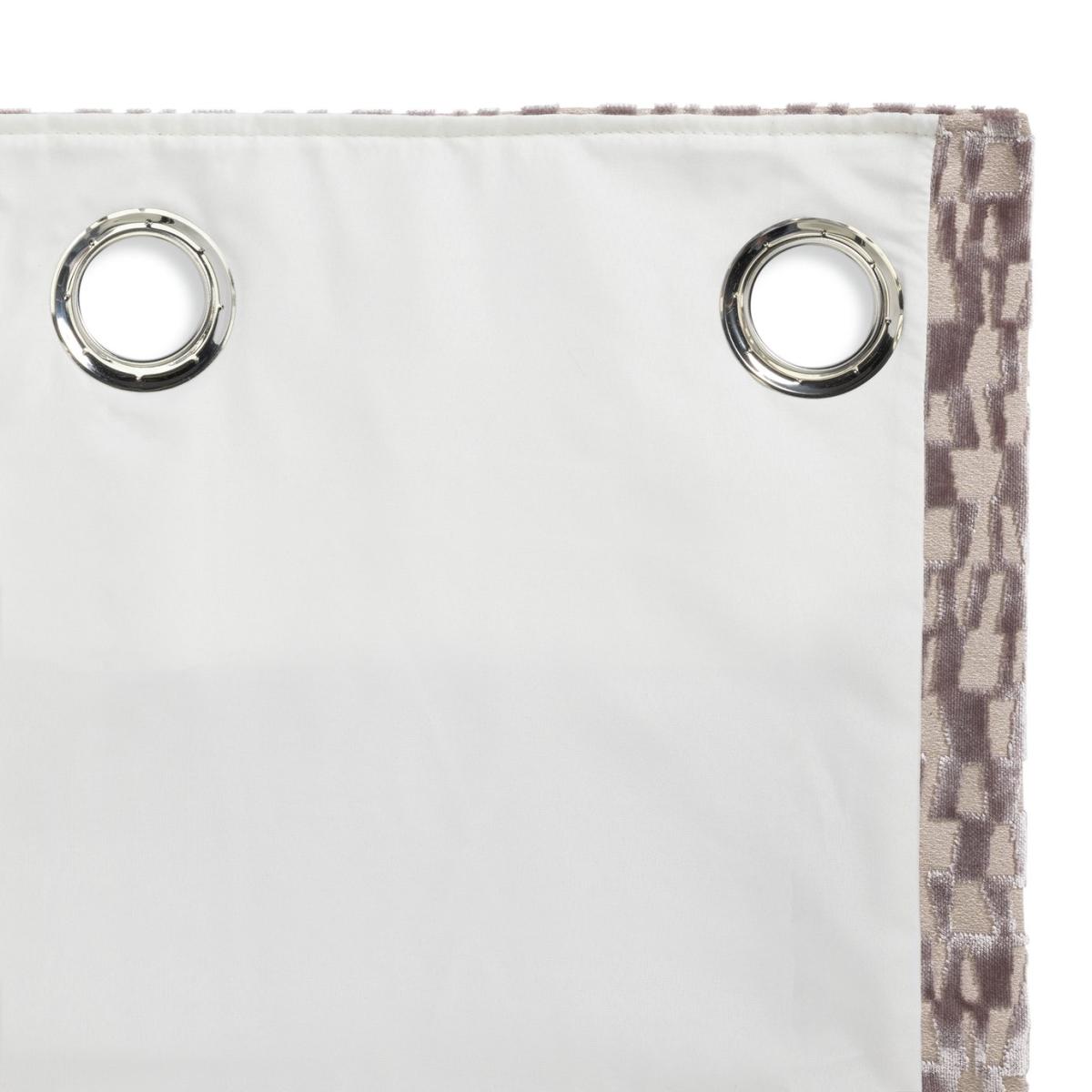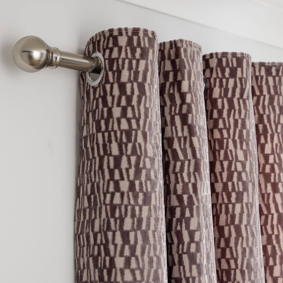 Showhome style. These glamorous eyelet curtains are transformative. With their wide folds and velvet jacquard sheen they are instantly mood changing. Elevating the look and injecting textural drama. Give yourself a treat and va va voom your room. Natural Geo Design. Silver Nikel Eyelets. Features Fully lined. Made from 92% polycotton and 8% linen. Lined. Lining made from 100% recycled polyester. Dimensions Size 117cm (46 inches) wide by 137cm (54 inches) drop. Dimensions provided include header tape. Width refers to one curtain panel before hanging. Eyelet diameter: 5cm. General information Contains one pair of curtains. Number of eyelets per curtain: 8. Suitable for curtain poles. Curtain pole not included. Professional clean only.