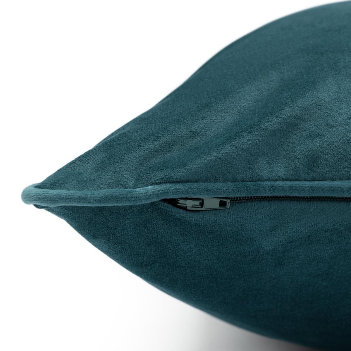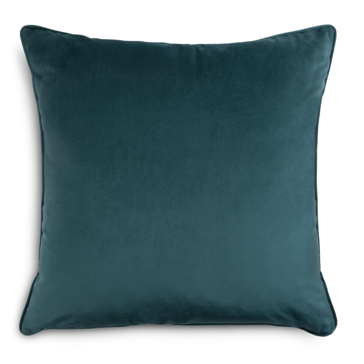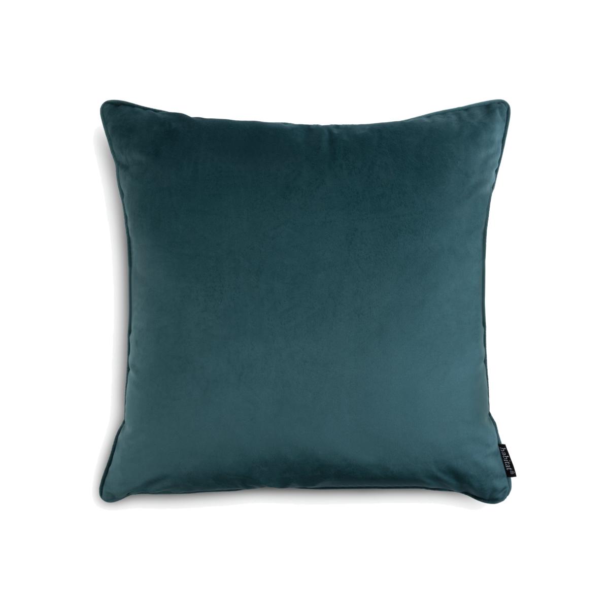 A soft opulent teal coloured velvet cushion featuring a piped edge. Made in the UK with a zip-off washable cover.