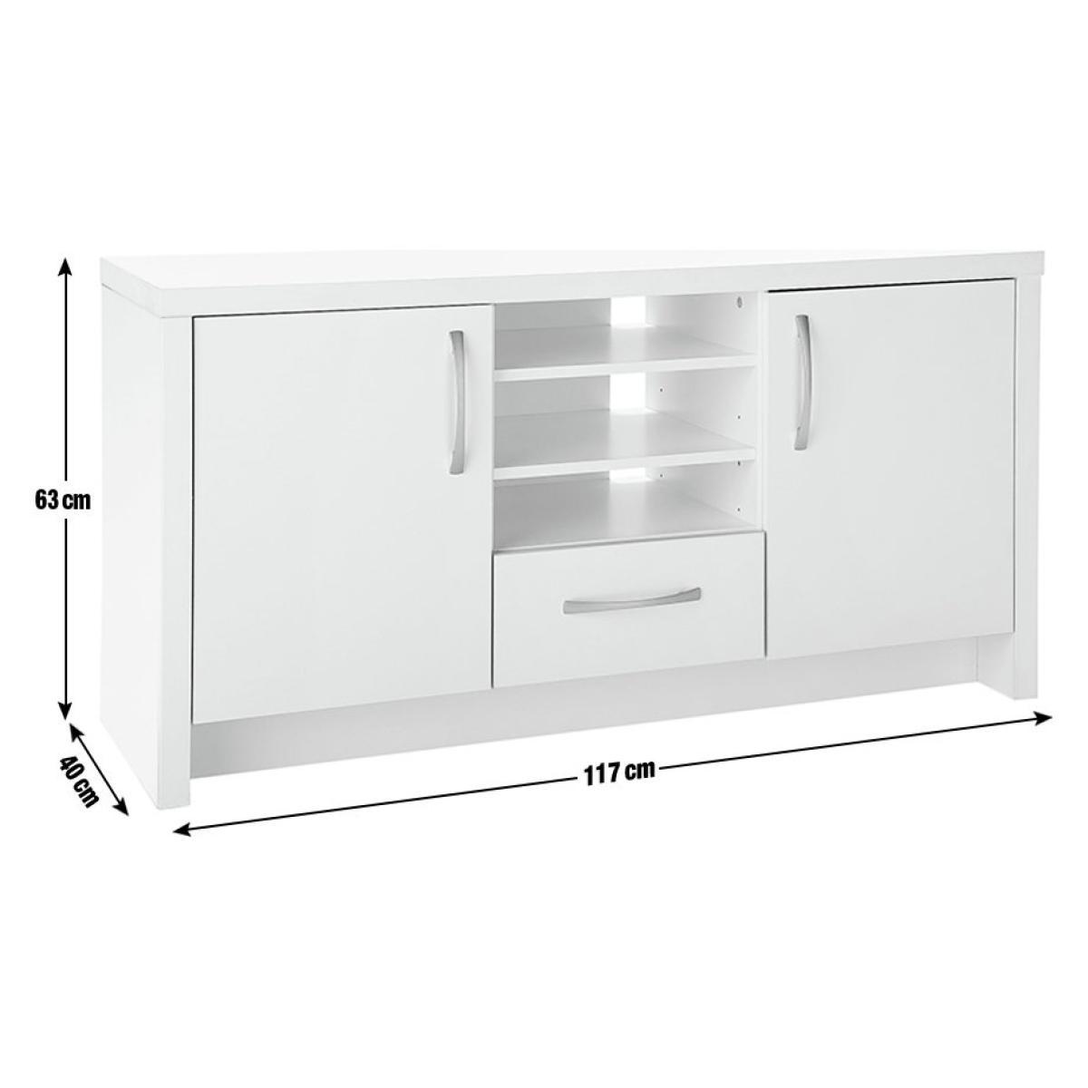 Fill that empty space with this characterful sideboard. It doubles up as a great TV unit too. Designed to last, this unit from the Habitat Venice collection has a solid, chunky design. It's finished in a fresh white. The top space allows you to exhibit those treasured trinkets. Or a TV of up to 50 inches if you prefer. The cupboards and drawer are just the ticket for hiding away films or games. Smoothly does it the drawers of the Venice feature easy-glide metal runners. It's finished with contemporary bow handles.