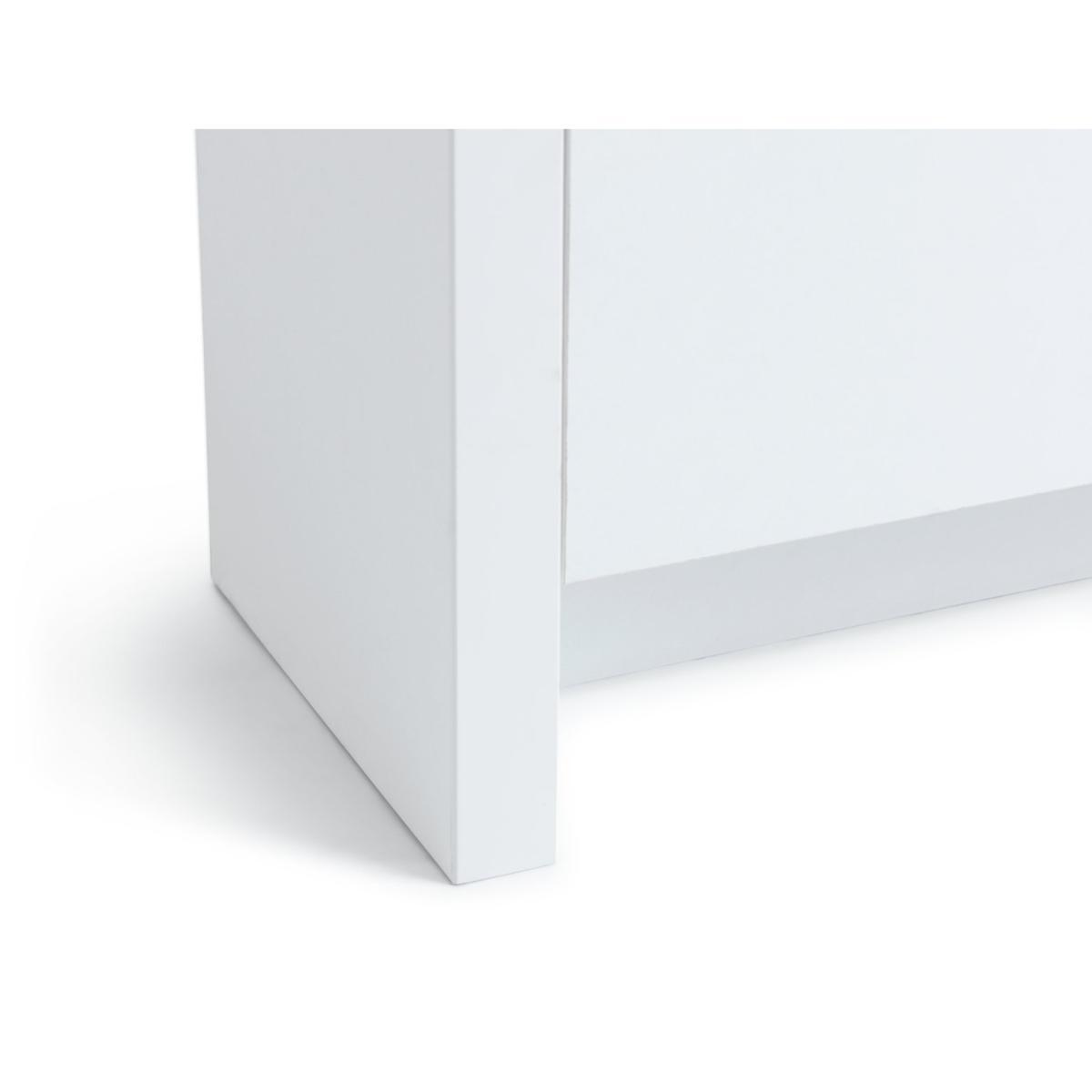 Elevate your lounge with this characterful TV unit. Designed to last, this unit from the Habitat Venice collection has a solid, chunky design. It's finished in a fresh white. It lives to serve. The open shelving is ideal for your TV box and games console, with easy cable access at the back. The drawers are the perfect hiding space for films, games or spare cables and controllers. Smoothly does it - the drawers of the Venice feature easy-glide metal runners. It's finished with contemporary bow handles. Practical and pretty.