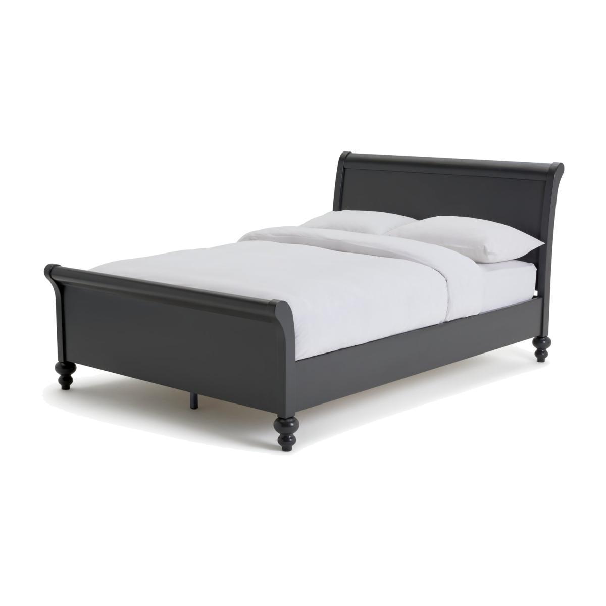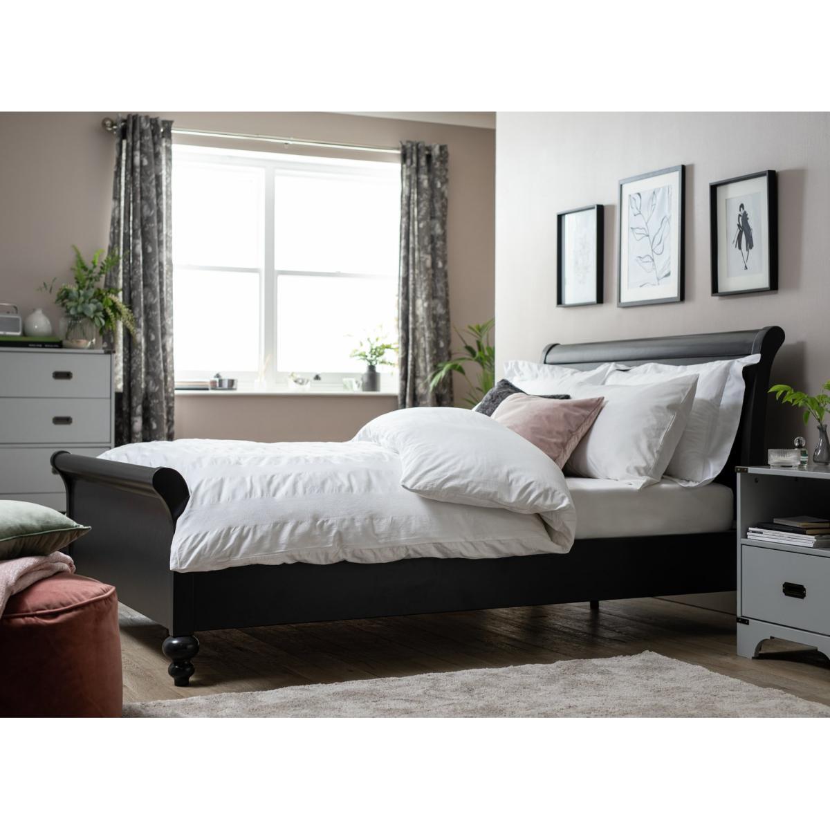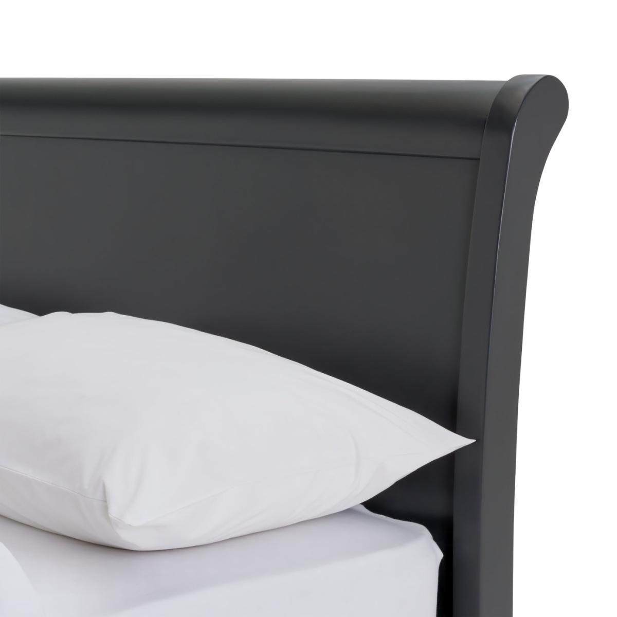 Hope you like the designer tweaks we've made to a classic bedframe? Sleigh style is always a bit rustic, and sometimes a bit posh. Our design is modern and slimline with a boutique feel. Still sporting a scrolled head and footboard, Vermont benefits from the addition of some wonderfully chunky legs. Crafted in smooth, solid pine and with sprung slats to give extra bounce to your mattress, the frame is both strong and comfortable. Finished in dark charcoal paint, we simply adore the result.