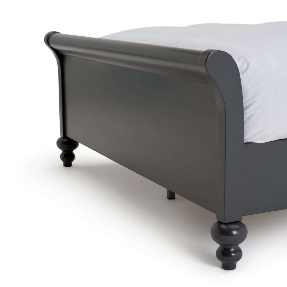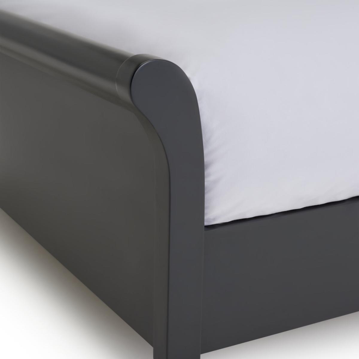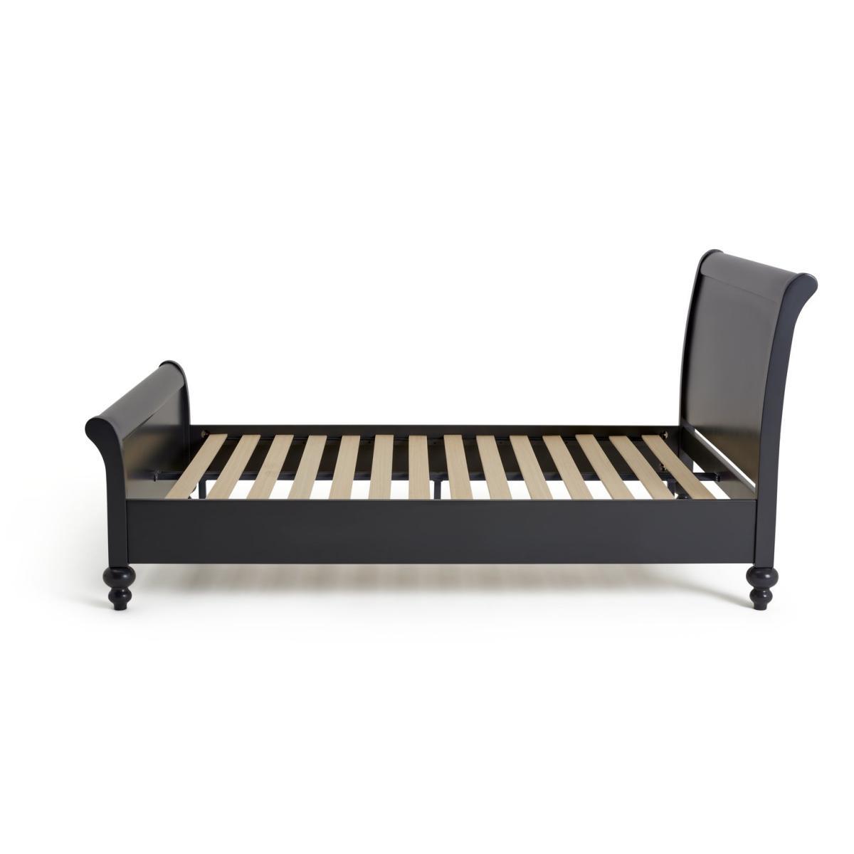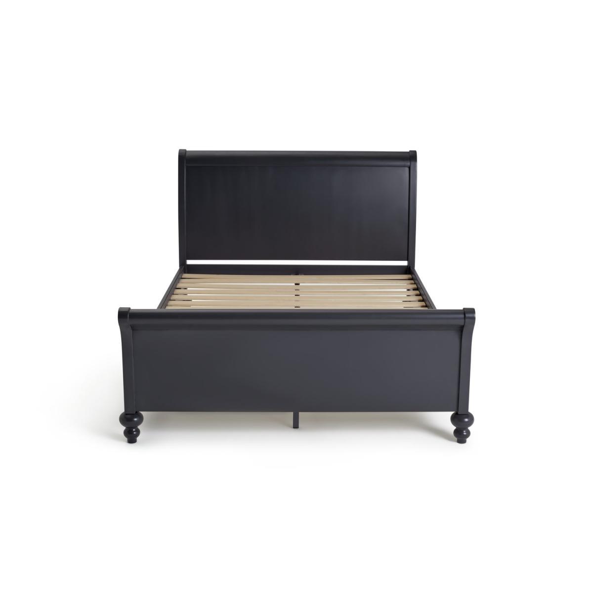 Hope you like the designer tweaks we've made to a classic bedframe? Sleigh style is always a bit rustic, and sometimes a bit posh. Our design is modern and slimline with a boutique feel. Still sporting a scrolled head and footboard, Vermont benefits from the addition of some wonderfully chunky legs. Crafted in smooth, solid pine and with sprung slats to give extra bounce to your mattress, the frame is both strong and comfortable. Finished in dark charcoal paint, we simply adore the result.