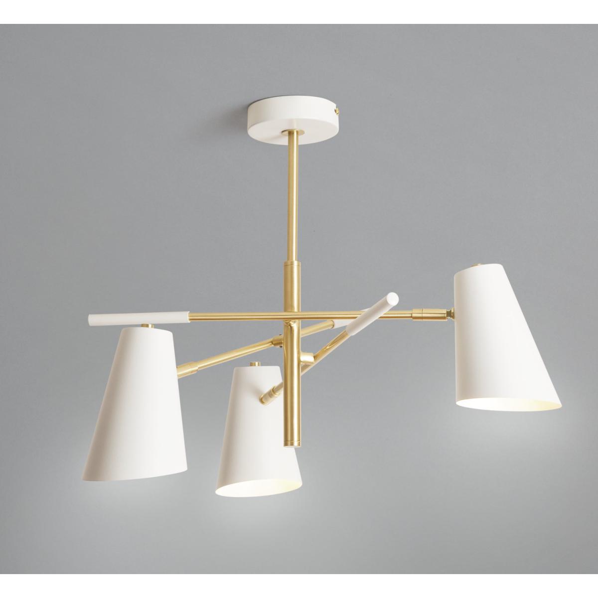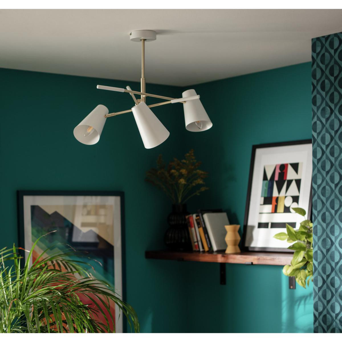 Spotlight on you. Our matte white ceiling light brightens up your lounge, kitchen or bedroom in a flash. This classic cone-shaped design in white metal meets gleaming gold accents for a luxe touch. With 3 varied angles, each lamp sends a pool of light down to give your space a radiant glow. Vesper aims to please.