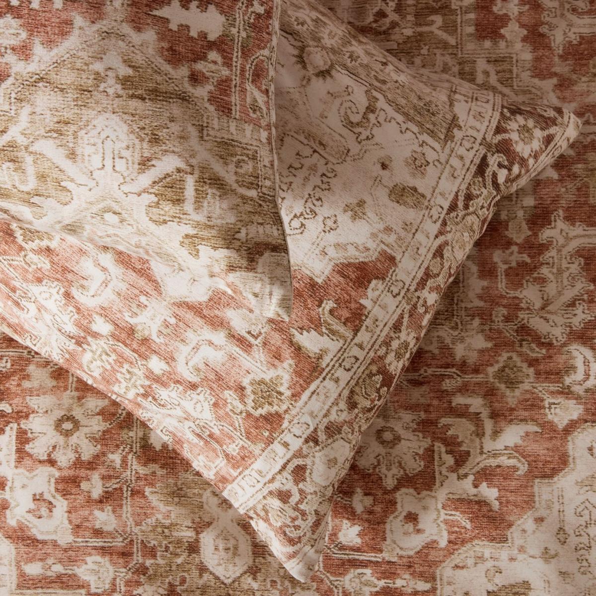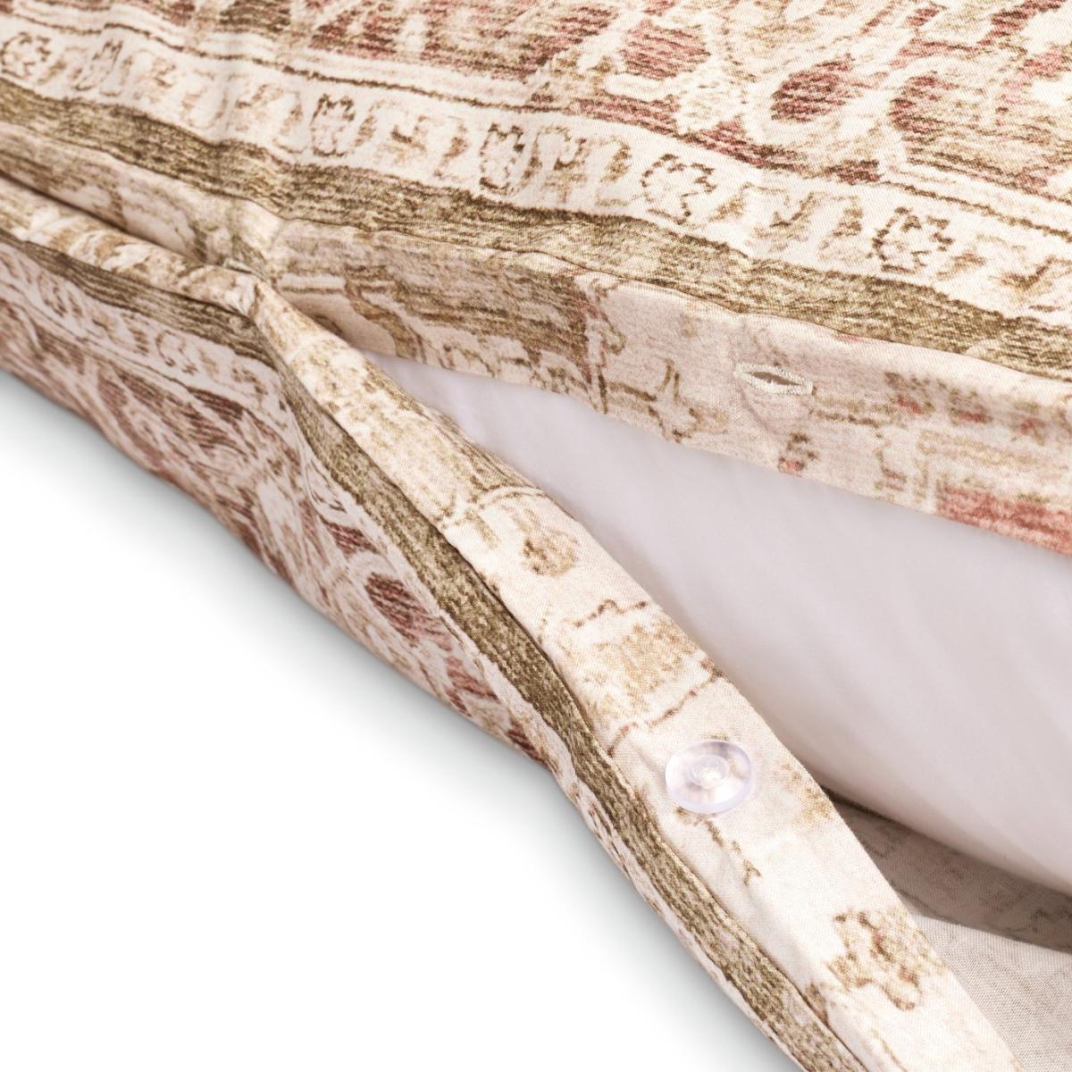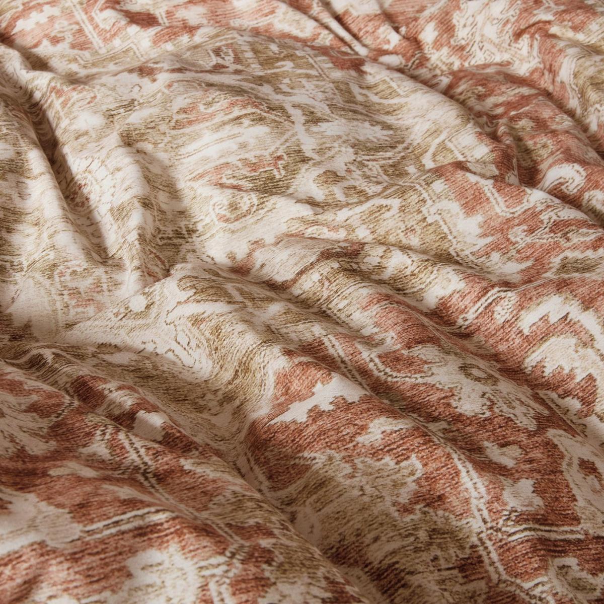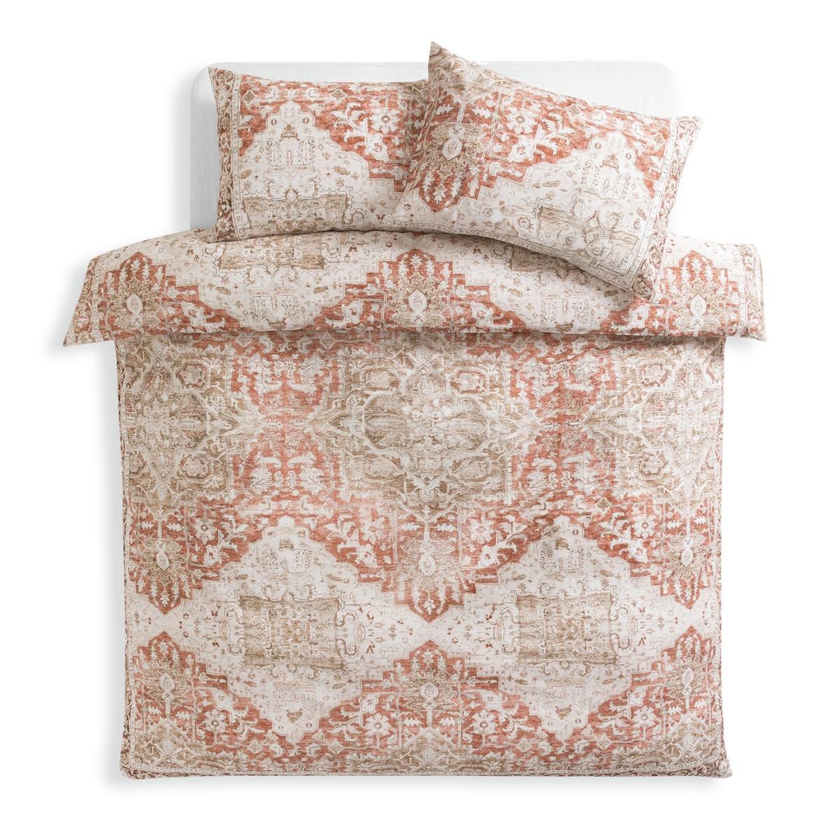 Laid back luxury with a little edge. This single bedding set brings texture, tone and just a touch of drama to your bedroom setup. The intricate pattern nods to timeless woven textiles. Think bohemian soul meets boutique hotel. Made from a soft, easy-care cotton blend, it's perfect for late nights and lie-ins. Fabric finish: printed. 50% recycled polyester, 50% cotton. 144 thread count. Set includes 1 duvet cover and 1 pillowcase. Bed size: single. Length 200cm, Width 135cm. Buttons for fastening. Standard pillowcase (s). Pillowcase length 75cm, Width 50cm. Machine washable. Suitable for tumble drying.