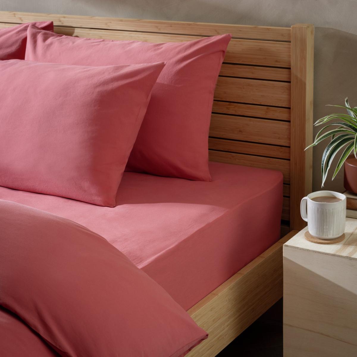 Easy peasy. Our cinnamon fitted sheet is for those super speedy bed changes. Made with 100% cotton washed fabric, it's cool and comfortable with a relaxed look. And the elasticated edges effortlessly snuggle over your mattress for a simple smooth finish. This item carries the STANDARD 100 by OEKO-TEX logo, which means you can be certain that every component has been tested for harmful substances and is therefore harmless to human health. Fabric finish: washed. 100% cotton,. 144 thread count. Double. Size L190, W135cm. Suitable for mattress depth of 28cm. Elasticated corners. Machine washable at 40 C. Suitable for tumble drying.