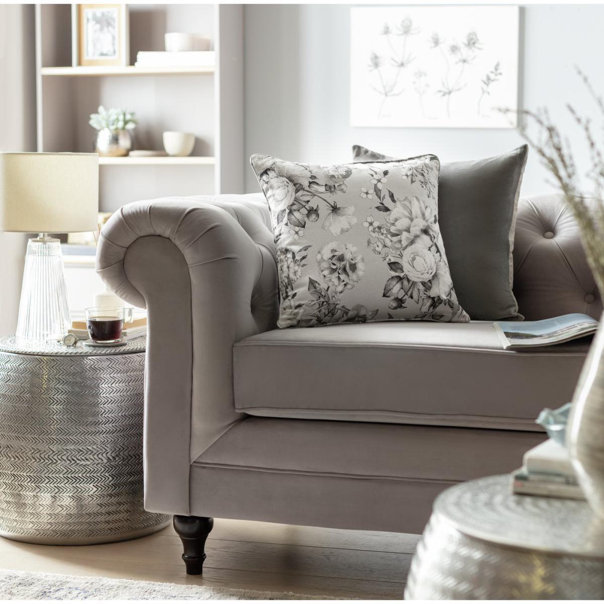 Habitat Watercolour Floral Print Cushion Cover Grey 43x43cm