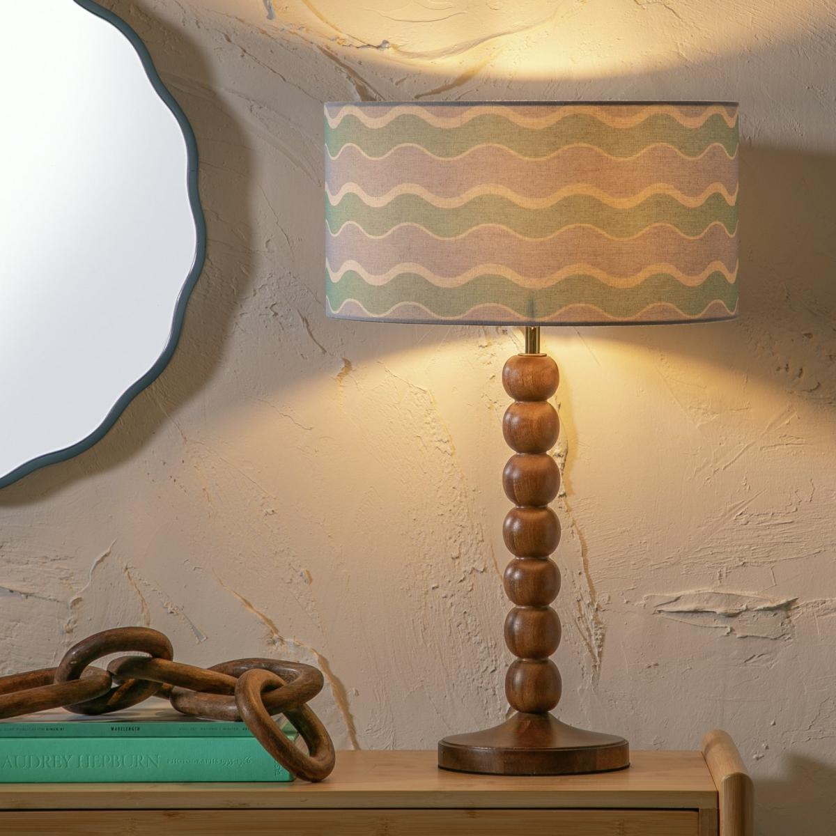 Featuring free-flowing curves in pastel shades, our cheerful printed fabric lampshade brightens the mood. Pop it on the ceiling or a lamp base, it works with both. A radiant retro all-rounder. Made from fabric. Size H18cm, Diameter 35cm. Recommended maximum bulb wattage 15 watts. Fully assembled. Easy fit shade. Manufacturer's 1 year guarantee.