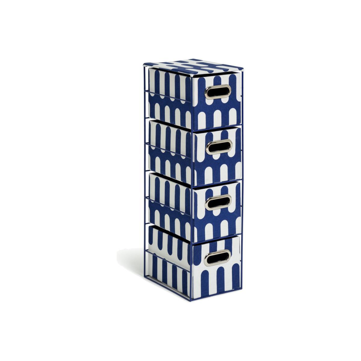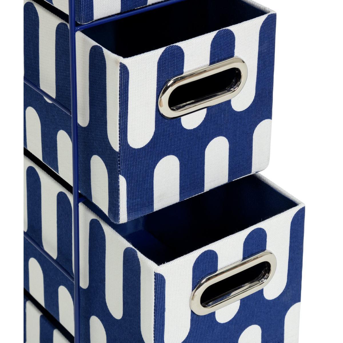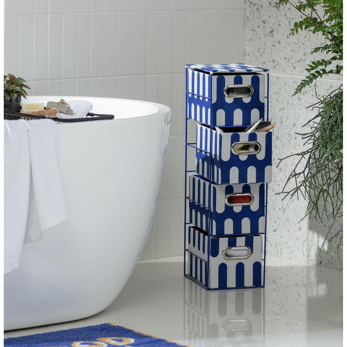 Wave goodbye to bathroom clutter. With 4 handy fabric drawers, this super slick storage unit has room for all your lotions and potions. The bold blue and white design has serious seaside appeal, while chrome handles add a smart finishing touch. Pre-assembled, it's ready when you are.