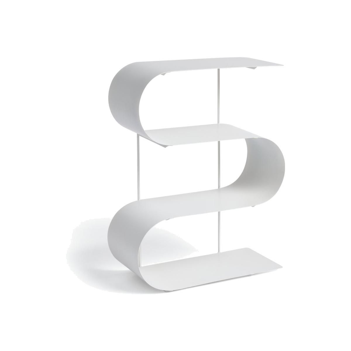 Wavy and wonderful. This fabulously curved shelving is a real standout design piece. Pop it in the lounge or kitchen to give your room a light and refreshing lift. With four spacious shelves you have plenty of room to store your favourite books, potted plants and family pictures. The crisp white adds a clean and calm touch to your home, great for a country or modern setting. Made of strong steel so it's sturdy, strong and stable. All you need to do is start filling it up.