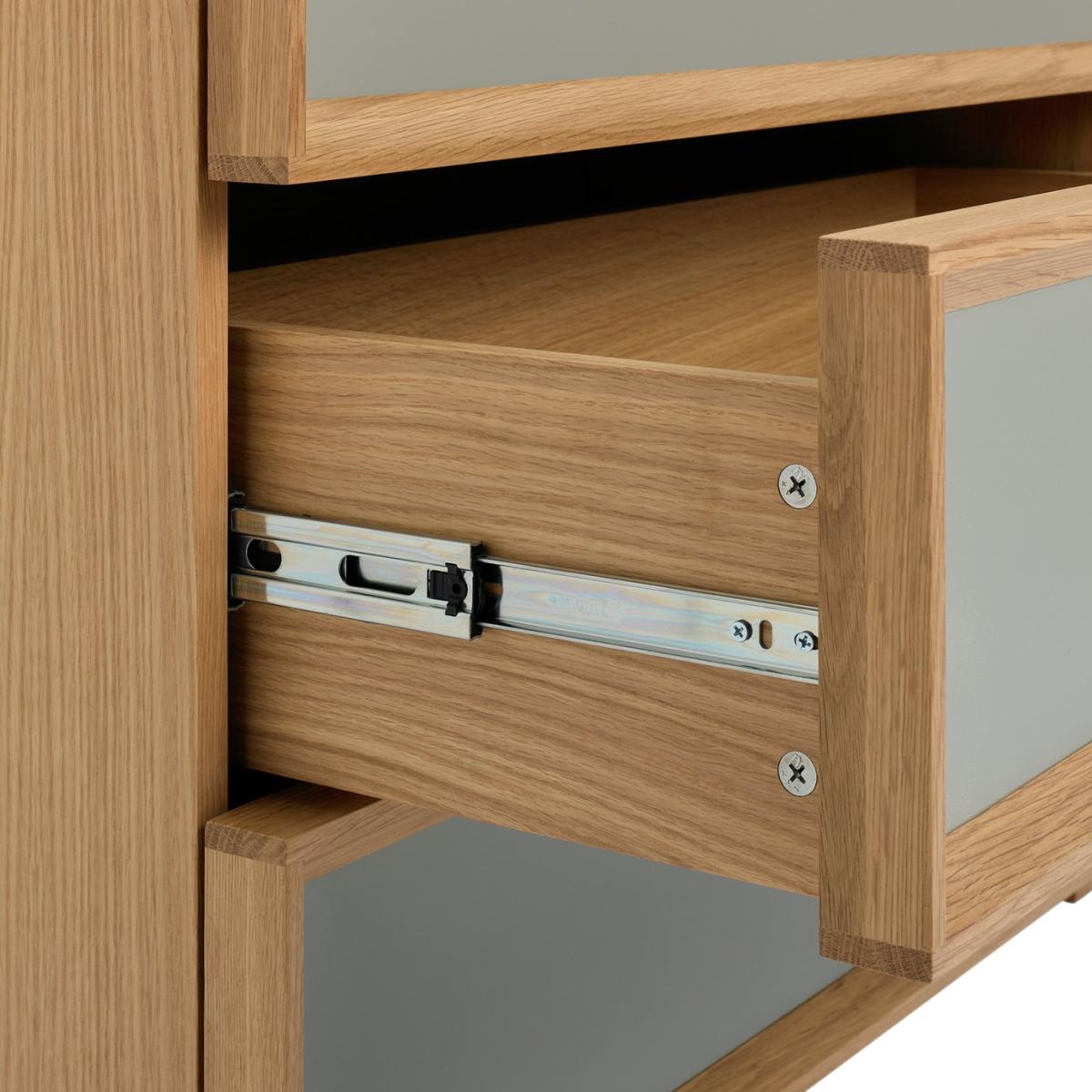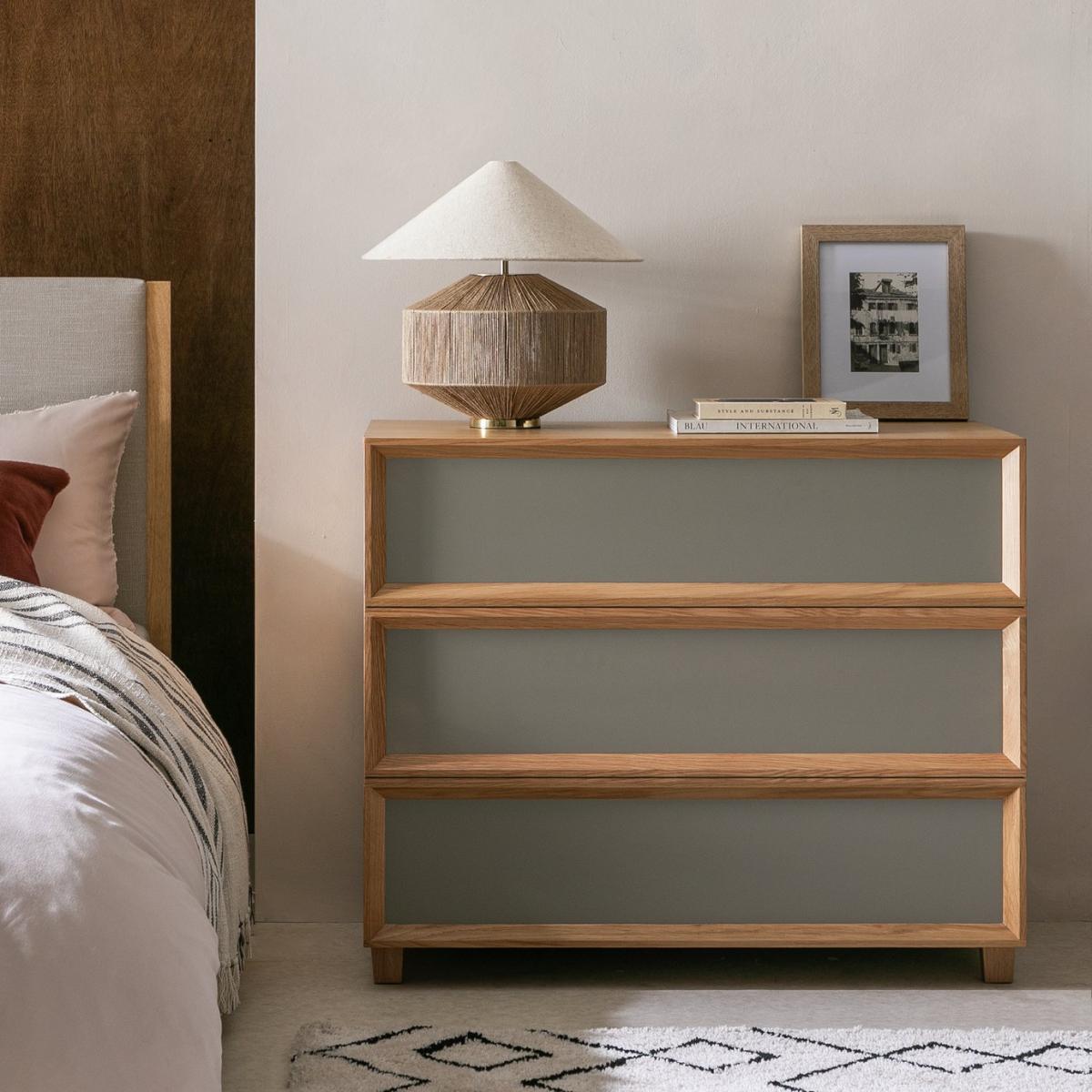 A chest designed to be the best, from the Habitat in-house studio. Made from sold oak and oak veneer, this chest of drawers is a beautifully crafted, versatile piece of furniture. Combining the warmth of natural wood with a contemporary grey colour block finish. There's plenty of space on top to style it your way. And masses of room within the 3 deep, soft close drawers. Plus, with these looks it makes a handsome sideboard too. Part of the Weston collection. Made of solid wood and MDF. 3 drawers with metal runners. Soft close. Packed flat - 2 people recommended (includes wall fixings). If this product is over 60cm high it must be securely attached to the wall to prevent overturning. Dimensions: Size H76, W90, D46cm. Internal drawer H14.9, W80.6, D38.2cm. Large internal drawer H14.9, W80.6, D38.2cm. Weight 41.5kg. General information: FSC certified meaning the materials used for this product are responsibly sourced. Manufacturer's 1 year guarantee.