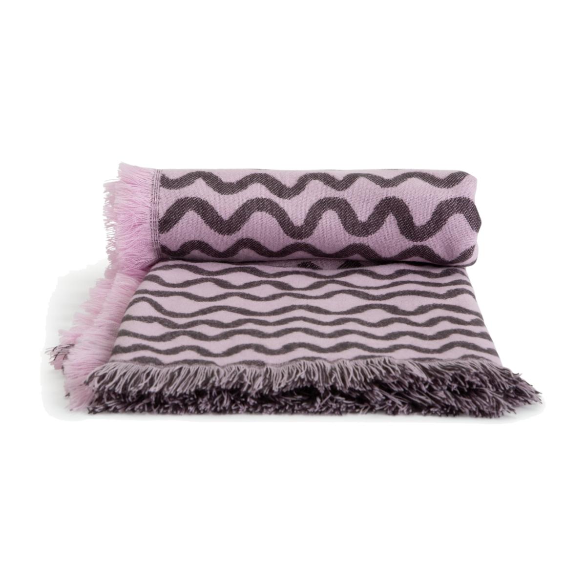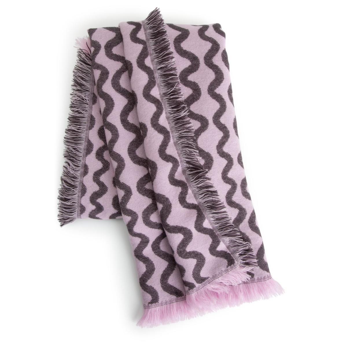 Wrap yourself up in quirky cool waves. Big on comfort, our throw is your ticket to cosy nights in. Woven in soothingly soft brushed fabric it's made for cuddles. Designed in an on-trend combo of pale pink and bold brown wiggles with boho type fringing. Looks good in the bedroom too. Lay it on top of a neutral duvet cover for an instant pop of character. Softly snazzy and super snuggly.