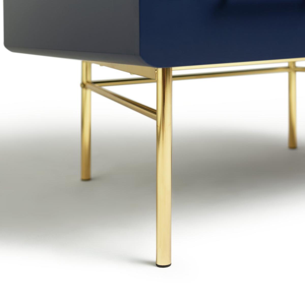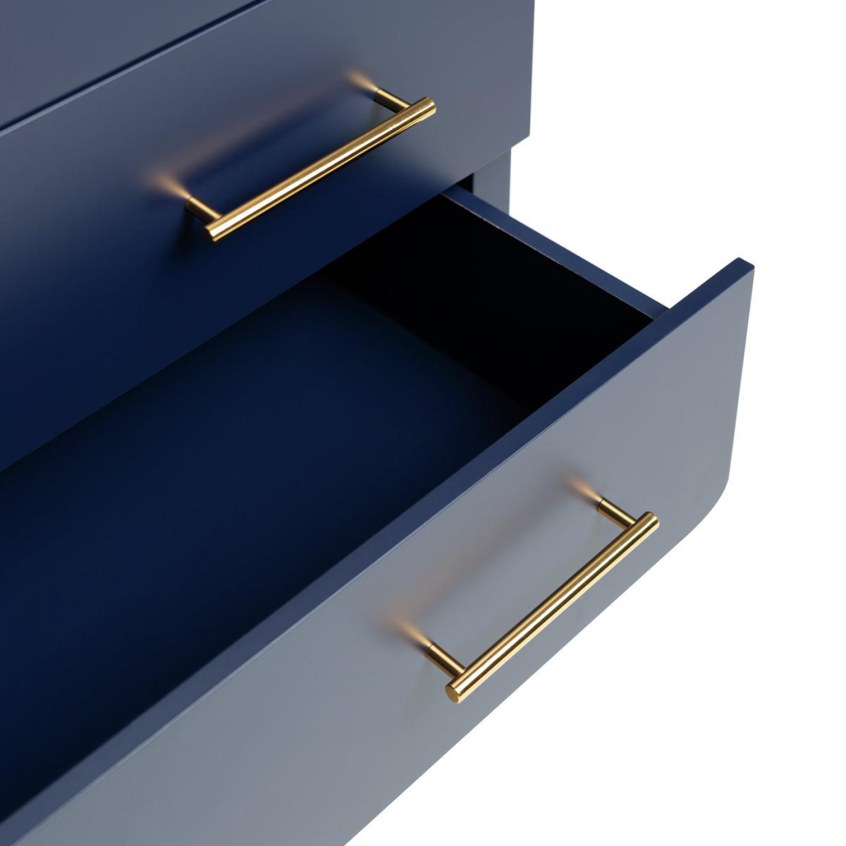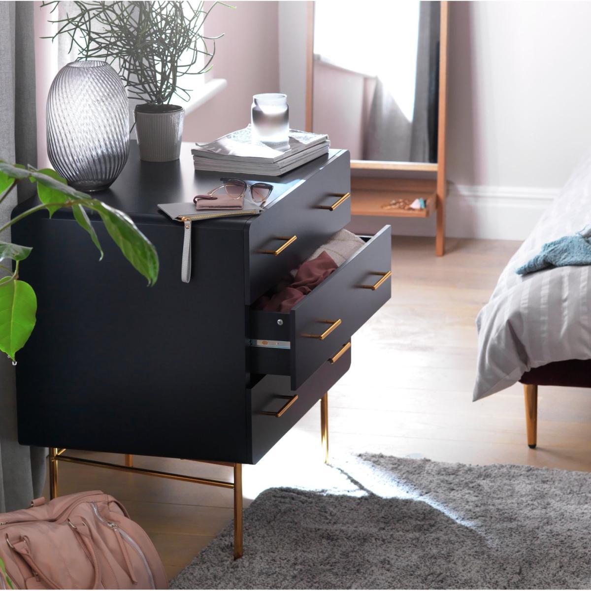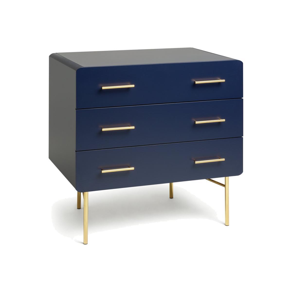 Gold and blue. So rich, so you. This elegant chest of drawers is classically stylish. We're loving how the slim gold plated steel handles and legs contrast with the Midnight blue finish. There's plenty of storage space. The six drawers open smoothly on metal runners. With room to keep jars, creams and other bedroom bits. A place for T-shirts, jumpers, and keeping socks and underwear nice and tidy. And room on top for a luscious lamp to add to the opulent mood.