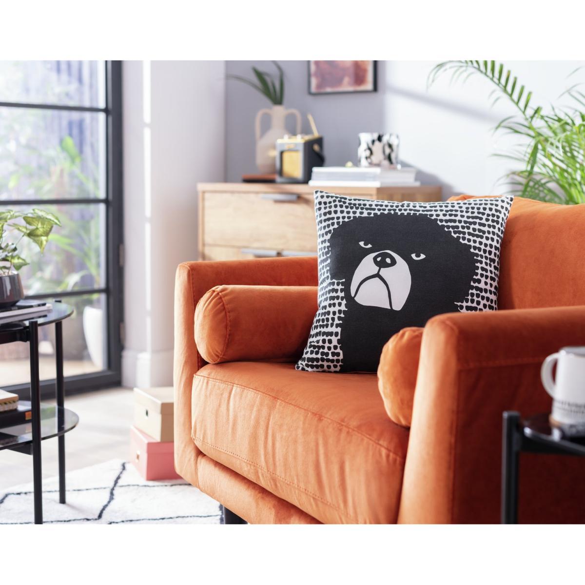 Partial to pups? Snuggle up with our adorable dog print reversible cushion. We're loving its cute, illustrated design on one side and dusty peach tones on the other. Mix and match as much as you like. Bring a playful, quirky edge to your living room or bedroom. Made with recycled polyester filler, this animal print cushion is eco-friendly too. Great.