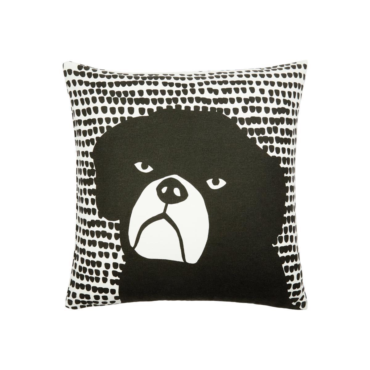 I love this cushion for its bold, graphic style and playful canine motif. It works particularly well in modern, eclectic, or Scandinavian interiors where monochrome patterns can add interest without overwhelming the space. The black and white palette makes it versatile-perfect for injecting a touch of fun into a neutral sofa or bed. Styling tips include stacking it with other textured cushions for visual contrast or pairing it with solid coloured throws to let the graphic print stand out. Because of its eye-catching design, it can serve as a focal point or accent piece, adding personality and charm to your living or sleeping areas.