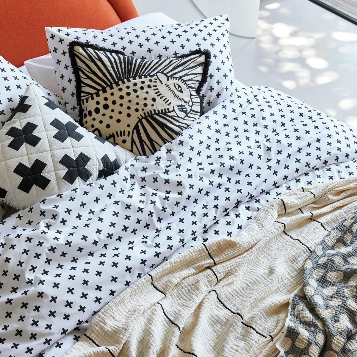 I love the Wilma cotton pillowcase pair for its fresh and versatile monochrome design. The black and white pattern adds a modern touch that works well in contemporary or Scandinavian interiors, but it’s also flexible enough for more eclectic or minimalist styles. The cross pattern provides subtle visual interest without overwhelming the space. Practical styling tips include pairing these with neutral bedding for a clean look, or mixing with textured cushions in varying shades of black, white, and grey to create layered depth. They’re great for adding a graphic element to your bed or sofa, and their crisp design makes them suitable year-round, whether in a bedroom, guest room, or living space.