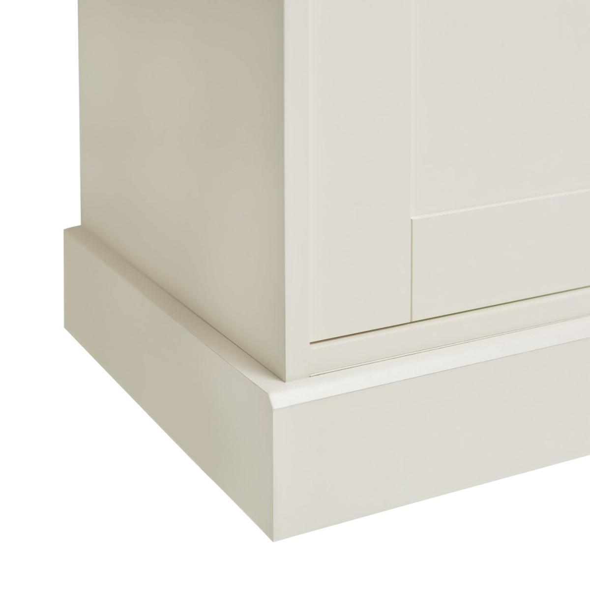 Our traditional TV unit will happily hog the limelight with its expansive wooden veneer top and soft white finish. Perfect to refresh any setting with its modern classic looks, it's a must have. Two cupboards either side with interior shelves are ideal to tuck away remotes, DVDs, games and spare cables. On runners, the middle drawers glide open to hold your media consoles and gaming devices. Pop the sound bar in front of your telly, sit back and get ready for the show. Don't forget the popcorn!