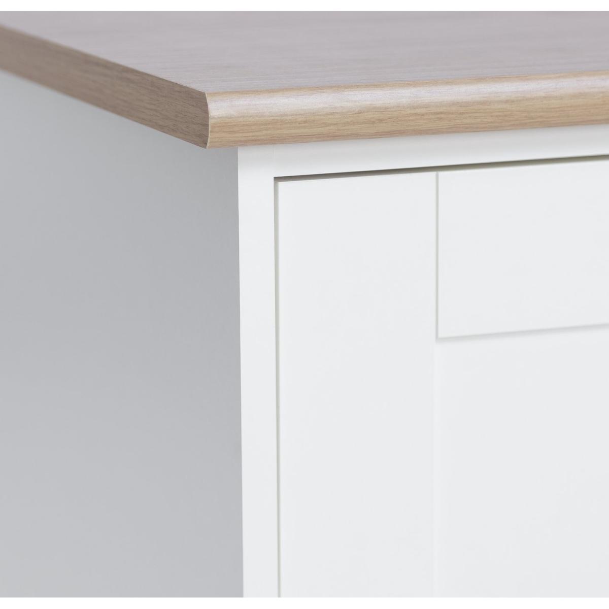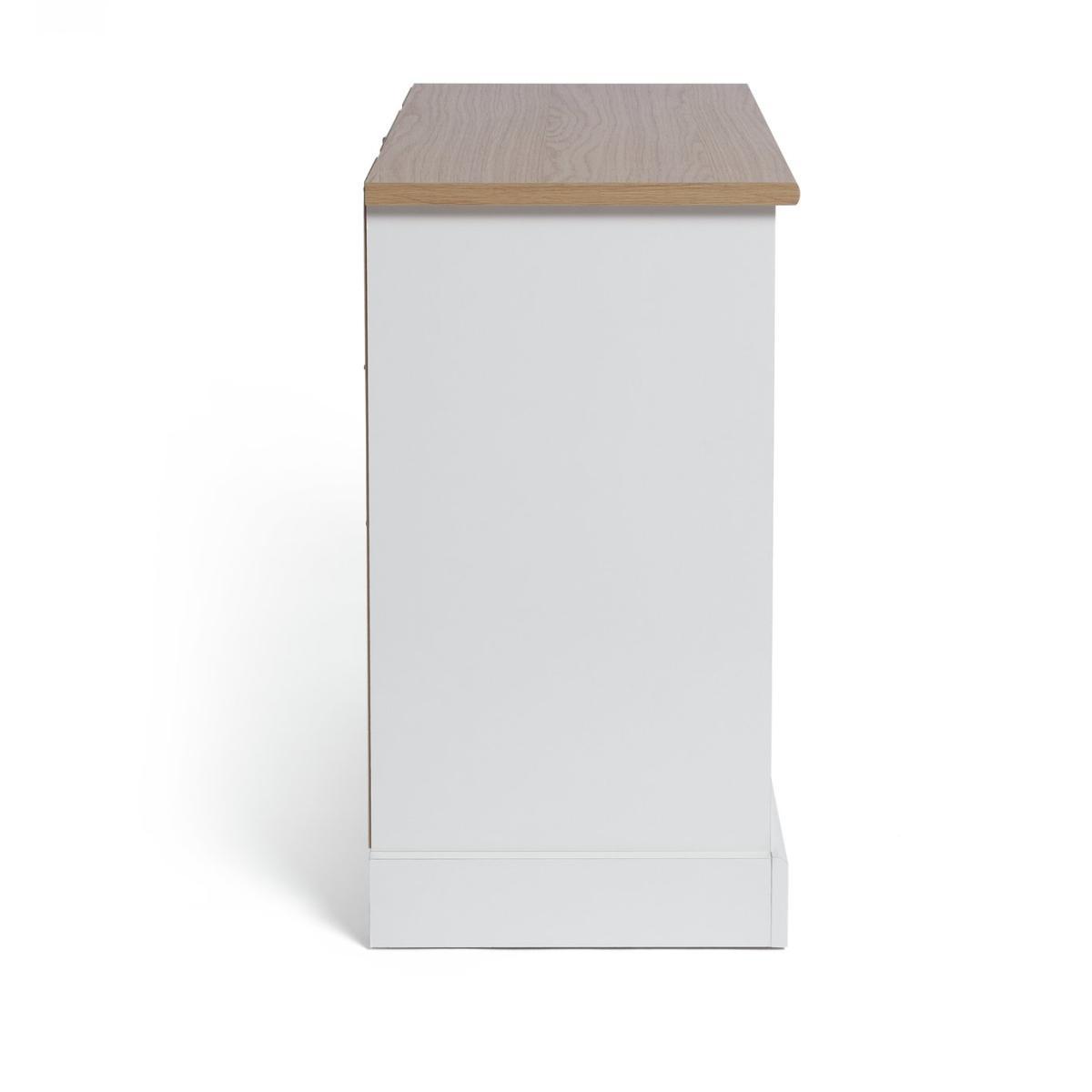 I love this white sideboard because of its classic yet versatile design, making it a fantastic addition to a range of interiors from coastal to Scandinavian styles. Its clean lines and natural wood details offer a fresh, understated look that can brighten up a space. It works particularly well in living rooms, dining areas, or even bedrooms for extra storage without cluttering the room. When styling, consider keeping the top surface minimal with a few curated decorative pieces like candles or plants, and utilise the interior for organised storage of essentials. Pairing it with both light and neutral tones will enhance its airy feel, while contrasting accessories in darker or bolder colours can add visual interest.