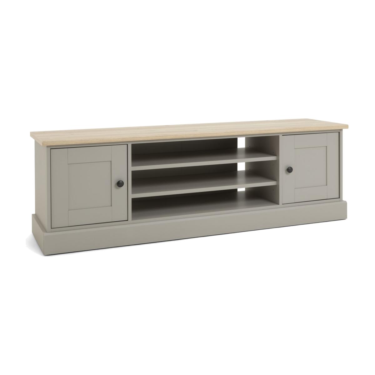 Our Winchester TV unit is a touch of Shaker and a little bit country. Check out the painted base, warm real wood effect top and antiqued pewter handles. Made for function it offers easy cable access and a mix of shelf and cupboard storage. Takes any TV up to 60. The perfect entertainment unit to keep your home clutter free. Part of the Winchester collection. Made from particleboard with a wood effect finish. Size H 49.8, W 150.3, D 39.4cm. Weight 39.1kg. 4 shelves. 2 doors. Antique pewter handles. 5 media storage sections. Largest height of media equipment sections 11cm. Easy cable access. Suitable for screen sizes up to 60in. Maximum weight of TV 20kg. Self-assembly - 2 people recommended. Package Dimensions: Package 1 dimensions: H13, W40.5, D158cm. Package 1 weight: 40kg. General information: We are excited to be welcoming some of our favourite HOME products into the Habitat range. Your product may arrive in Habitat or HOME packaging. FSC certified meaning the materials used for this product are responsibly sourced.