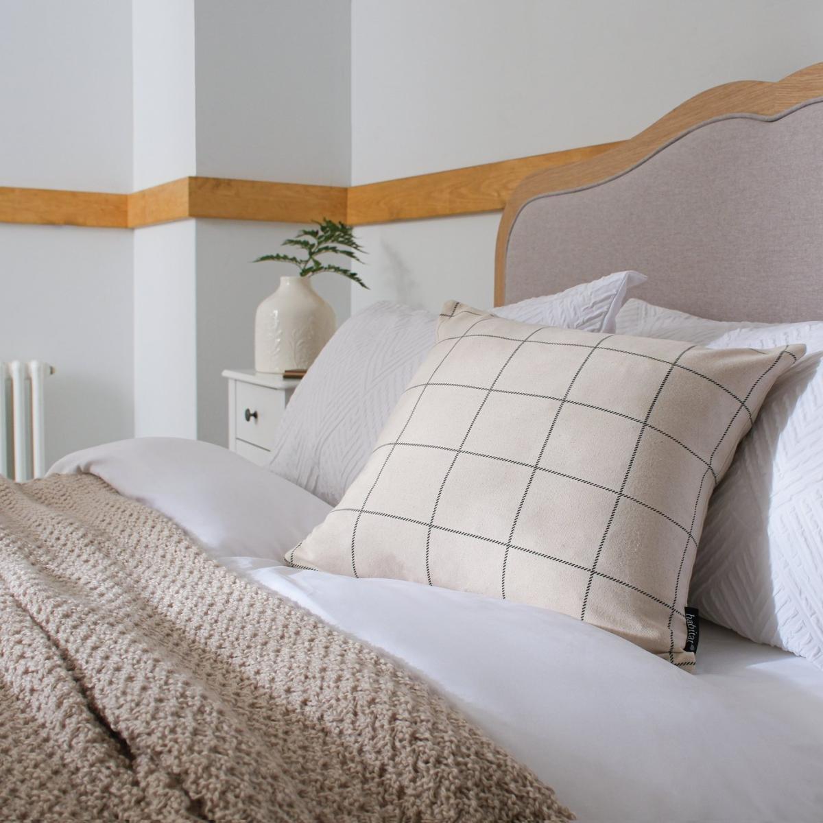 I love this check cushion cover for its classic yet relaxed aesthetic, making it a versatile addition to various interiors. It works particularly well in traditional or country-style rooms, but can also add a touch of pattern and texture to more contemporary schemes. The subtle check pattern in neutral tones means it can be easily mixed with other textiles and layered with different colours and textures. For styling tips, try grouping it with solid-coloured cushions in complementing shades, or use it as a neutral anchor on a patterned sofa to bring a balanced, polished look. It's perfect for adding a cosy touch to living rooms or bedrooms without overwhelming the space.