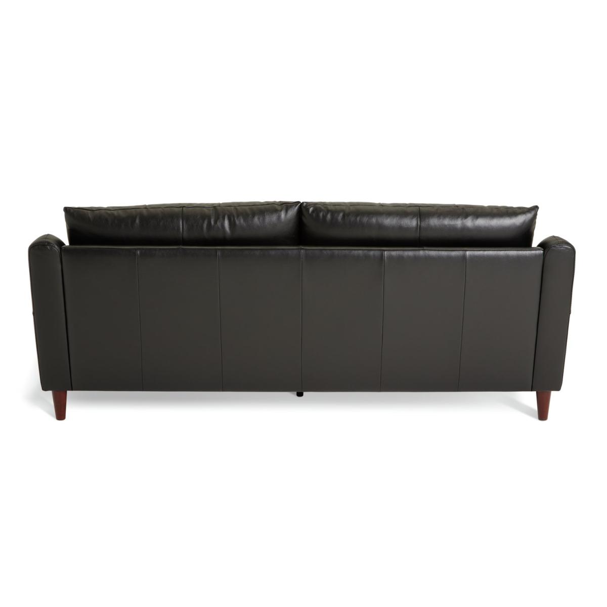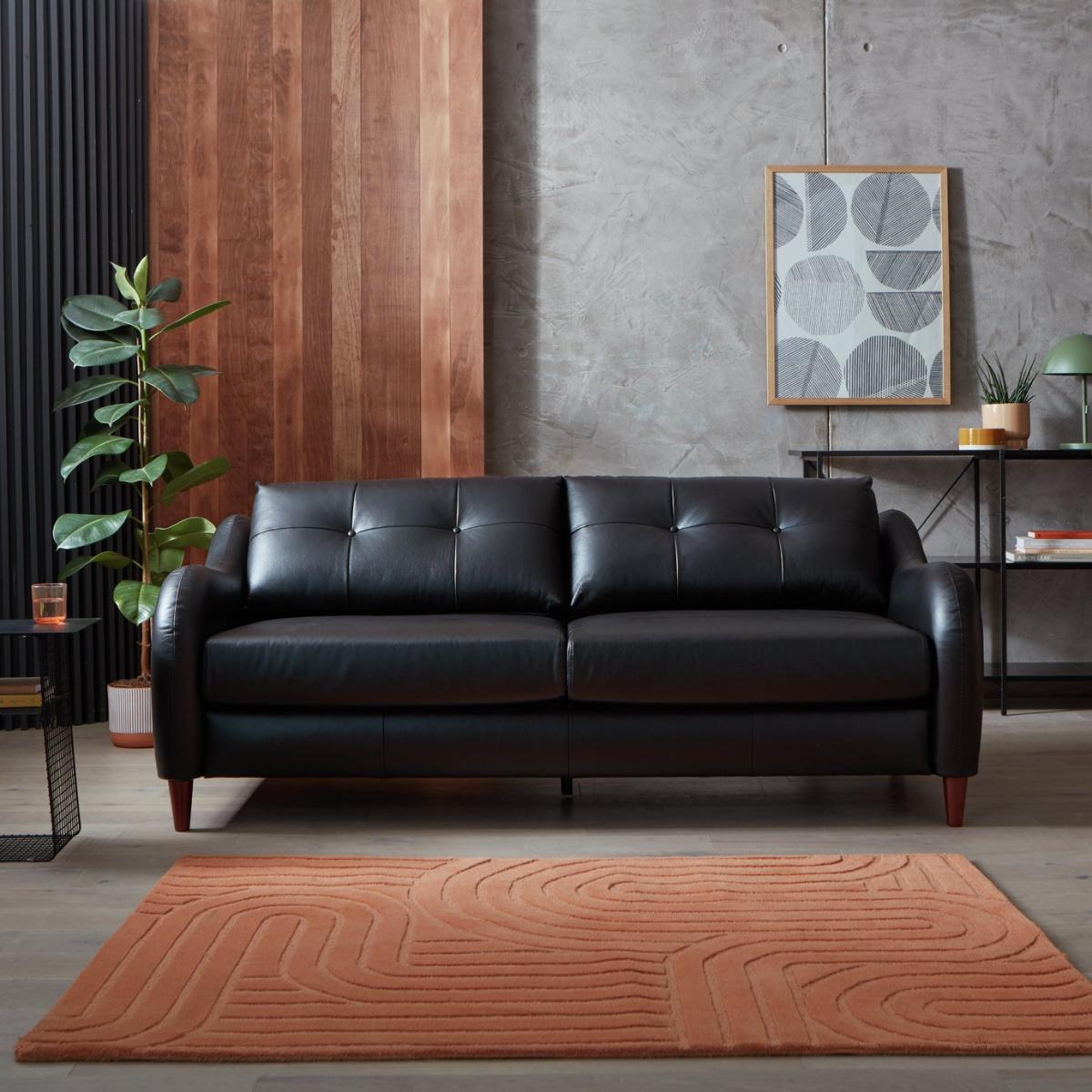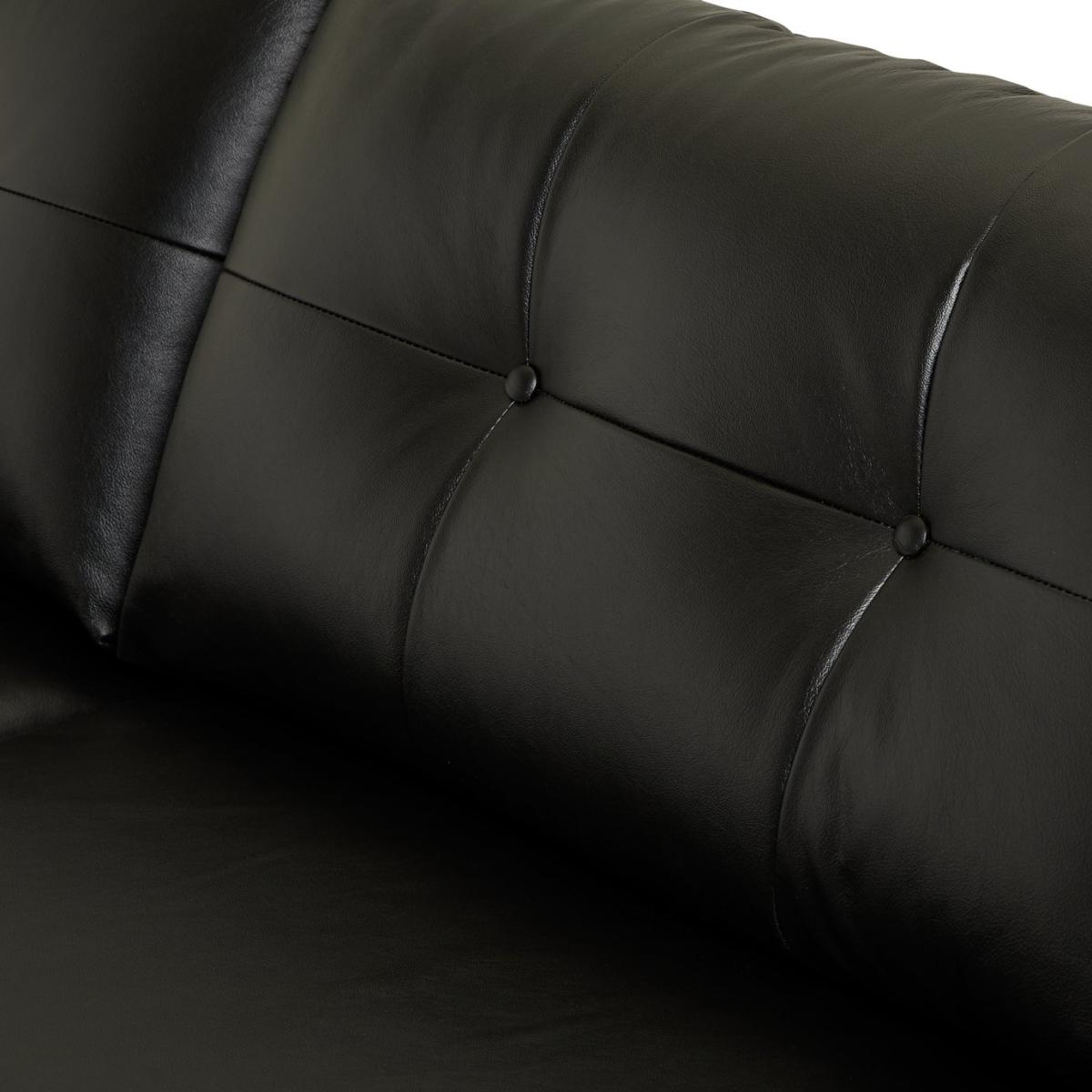 Get comfy with Winnie. Upholstered in pure top grain black leather, this 3-seater sofa with its curvaceous arms and buttoned detailing has timeless good looks. A joy to sit in too. Relax into the foam filled seats, nestle against plump, padded cushions and settle in for some luxe lounging. Part of the Winnie collection. Material: Top grain leather. Made from 100% leather. Wooden feet. Medium firm seat cushions. Removable seats with foam filling. Removable cushion(s) with fibre filling. Free fabric swatch available on this line. Dimensions: Size H84, W199, D97cm. Floor to seat height: 48cm. Depth of seat: 54cm. Height of seat back: 38cm. Width of seating area between arms: 170cm. Height of arm rest: 62cm. Weight 52kg. Professional clean only. Plump cushions regularly to maintain shape. Minimal assembly. Maximum individual user weight 110kg. Packaged dimensions: Package size H62, W201, D99cm. FSC certified meaning the materials used for this product are responsibly sourced. General information: Manufacturer's 2 year guarantee.
