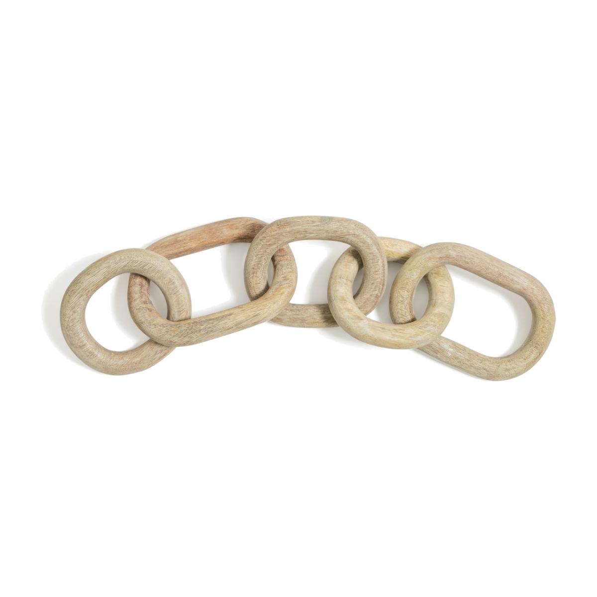 Bring a rustic touch to your space with our wooden chain-link ornament. Crafted from mango wood with a weathered white-wash finish, it's full of natural charm. Rest it on the mantle or hook it up on the wall with a few vines intertwined. That's one fresh feature. Got that summer feeling? Liven up your lounge with more pretty pieces in our Mediterranean collection. Size H1.5, W45, D13cm. Weight 550g.