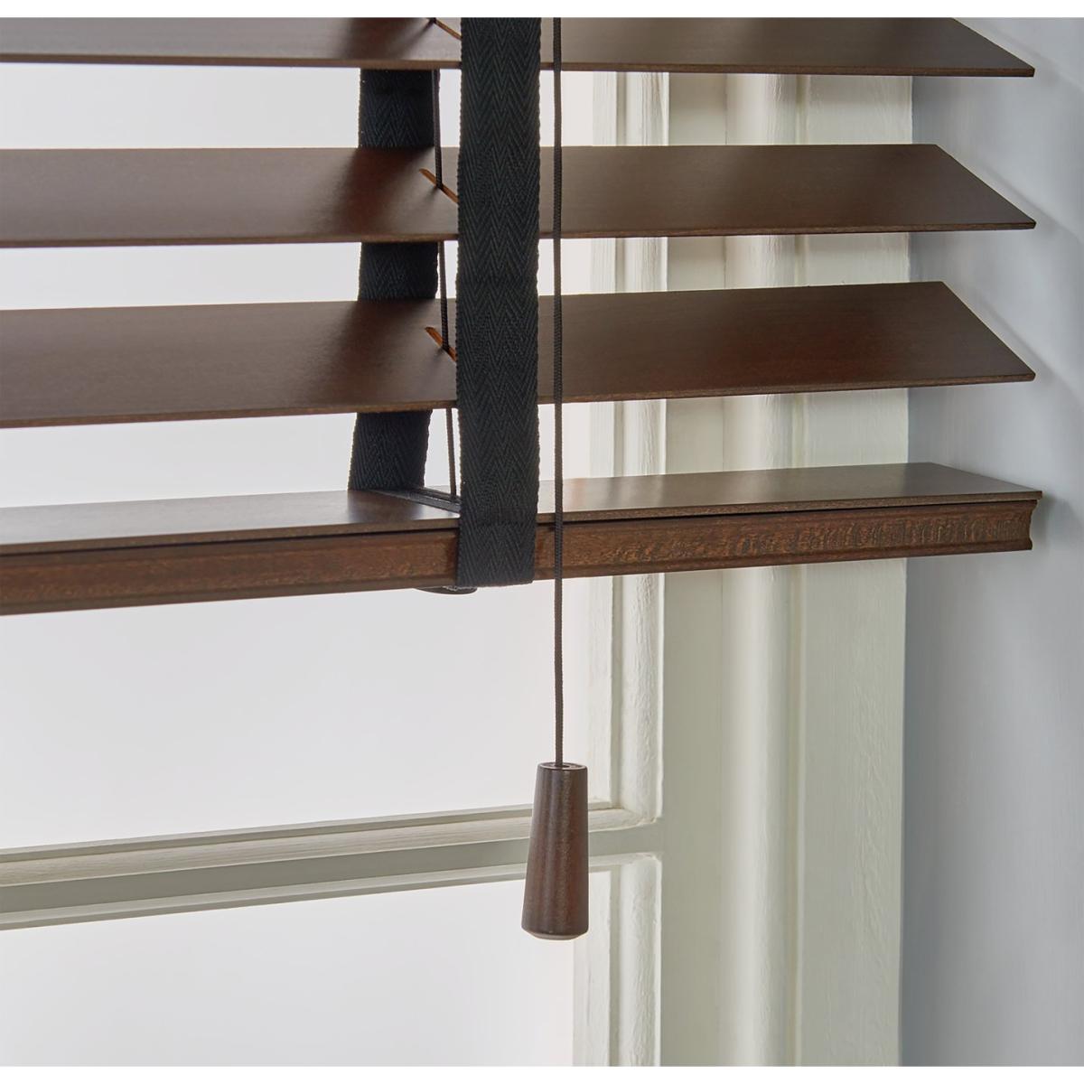 A strikingly stylish way to frame your window, this wooden tape blind has large, thick slats reminiscent of shutters that offer exceptional privacy and light control. With a beautiful natural finish, the blind's timeless design and use of clean lines will suit any decor. With an easy-to-use mechanism, simply twist the rod to precisely control how much light is let in. You can achieve total darkness, gently filter the in light or fully open the slats and fill your room with sunshine. The blind comes with a safety cleat that'll keep the cord in place and make it child safe. And when it needs a clean simply wipe with a damp cloth. Features: Automatic safety lock. Wood. Removable slats. Features tilt control. Dimensions: Size W60cm, drop 160cm / W24in, 63in. Slat width: 5cm. Length can be easily trimmed to size. General information: Tested and safe to the 2014 blind safety standards BS EN 13120. Fits inside or outside window recess or to wall. This blind comes with a child safety cleat. Includes fixtures; fittings and instructions. Dust or wipe with a damp cloth only. Manufacturer's 1 year guarantee.