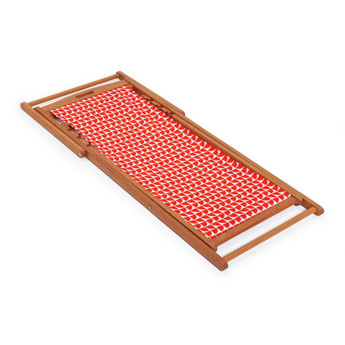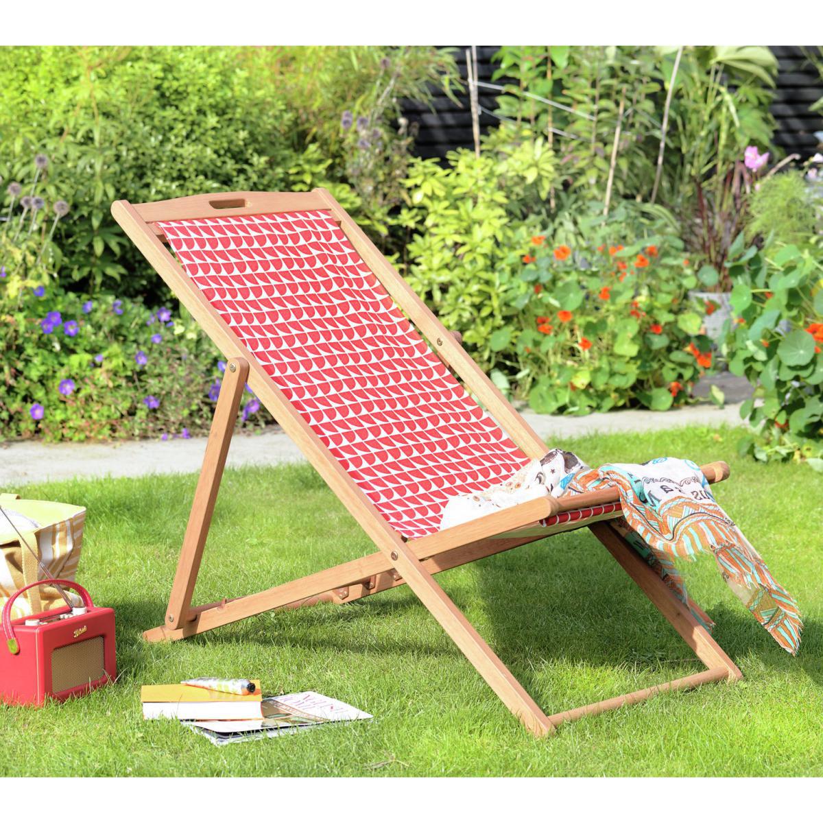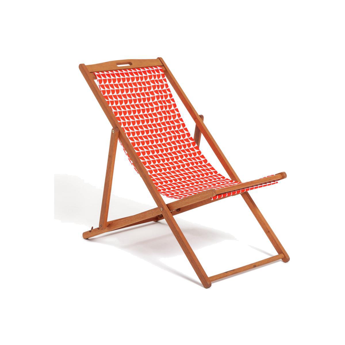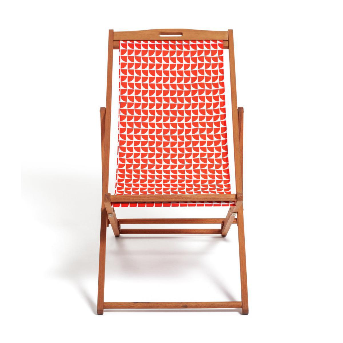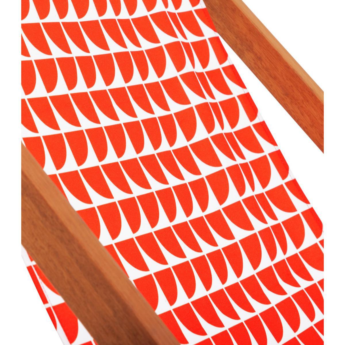 Grab your flip flops and towel. If you can't get to the beach, we bring the beach to you with this laid-back little number. It's 3 adjustable positions from upright to recline mean you can settle back and soak up the sun. Or sit up for an ice cream and a good read of your latest novel. An easy fold mechanism makes it easy to store or transport. Easy-to-store and space-saving. The natural solid wood frame is beautiful and weather resistant and complemented by our zesty Geo Orange fabric.