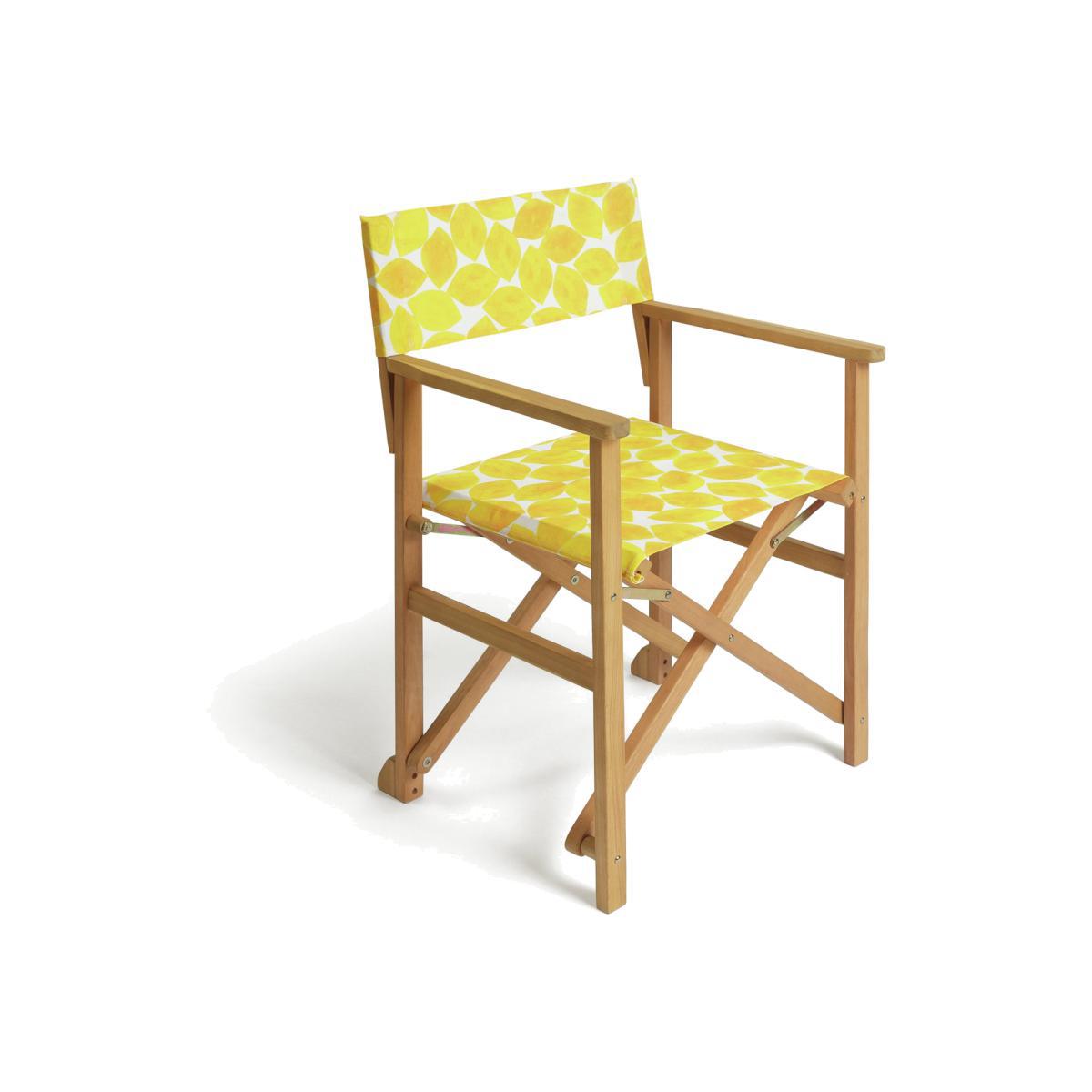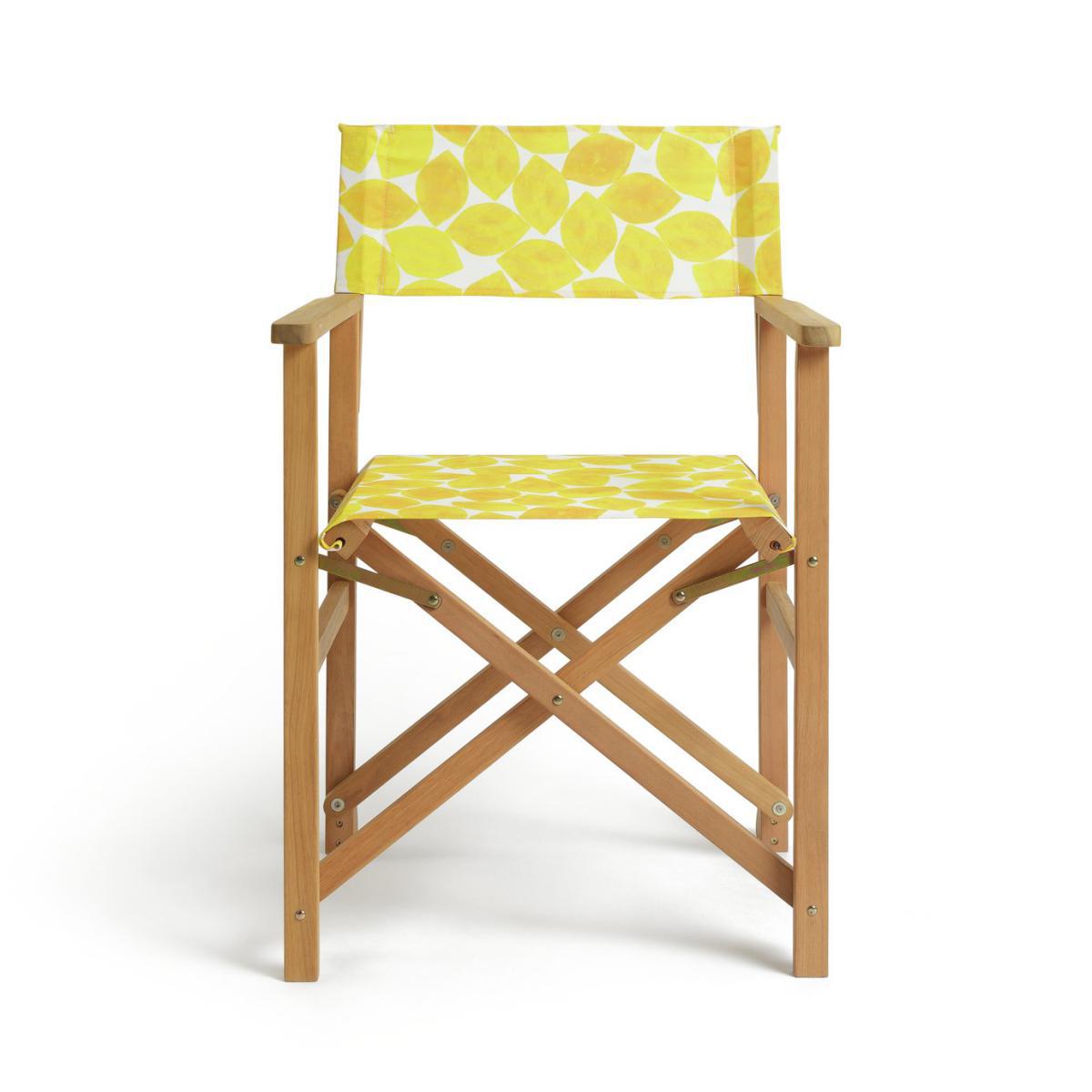 Let the good times roll with this classic Hollywood Director's Chair. Sit back, soak up the sun and unwind. With a fully adjustable back for your comfort, easy to fold and lightweight to carry it's the perfect companion for picnics or a trip to the beach. You'll steal the show at festival time. Designed in moisture-resistant eucalyptus wood and water-resistant fabric, there's no need to worry about being caught in a shower. In a vibrant, zesty, eye-catching lemon print, it certainly brightens things up.