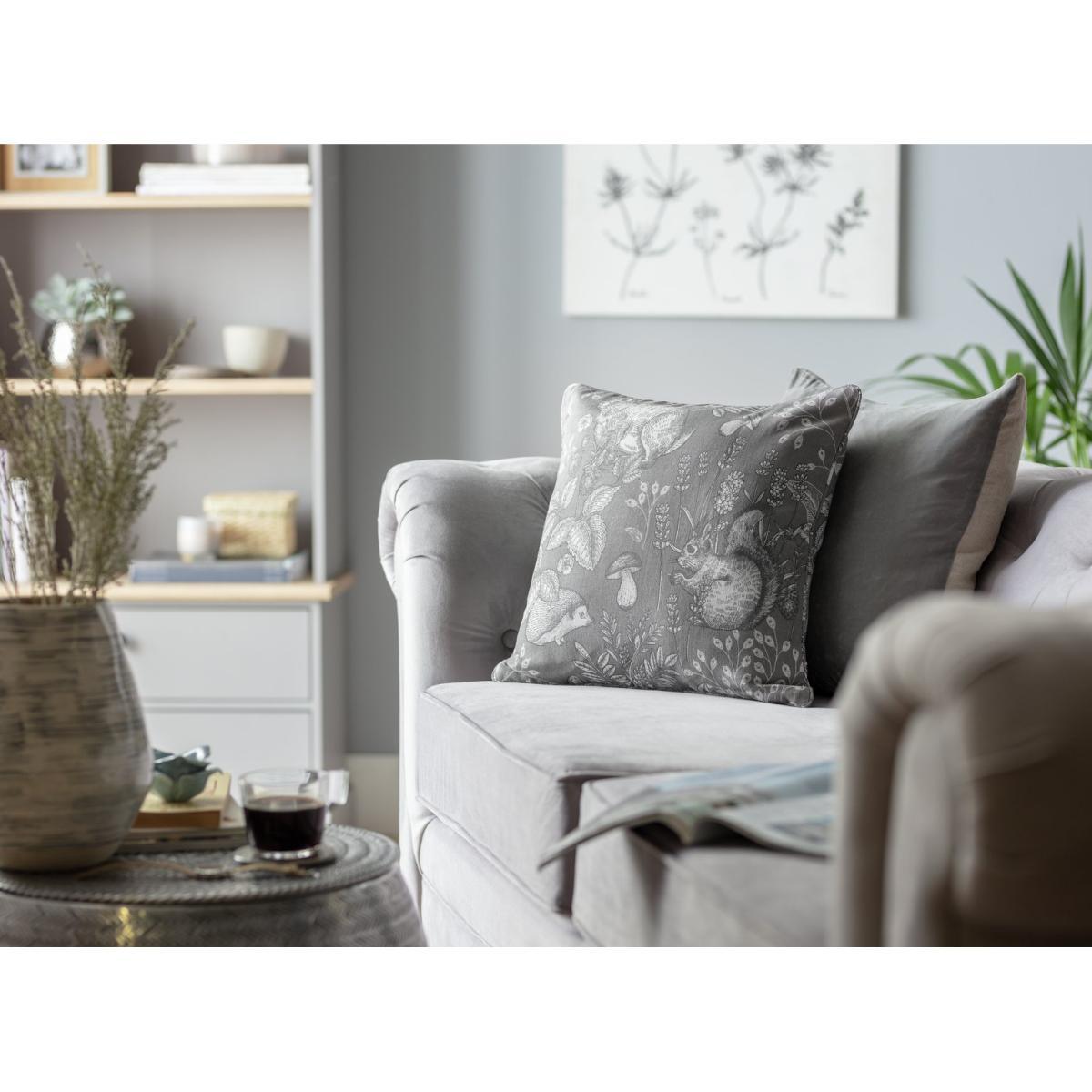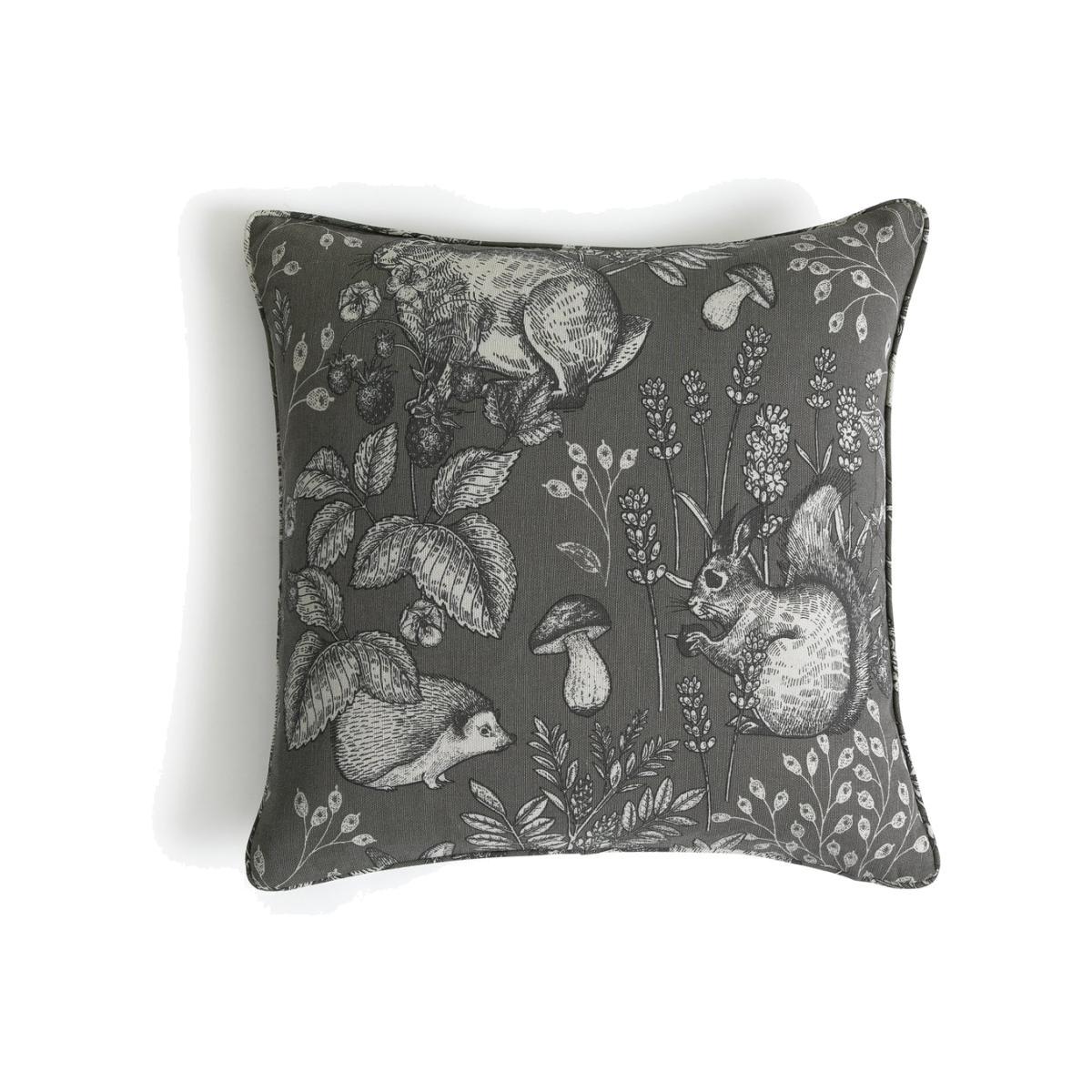 Bring a little woodland magic home with this enchanting cushion cover. Covered in foliage and cute forest creatures, it has bags of charm. Made in a rich half panama cotton weave it's divinely durable. In on-trend grey, this cosy piece adds a playful touch to a contemporary decor scheme. Machine washable? Naturally.