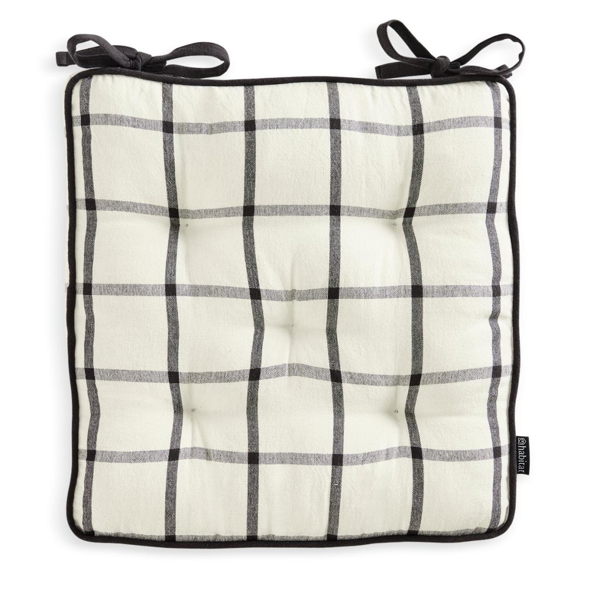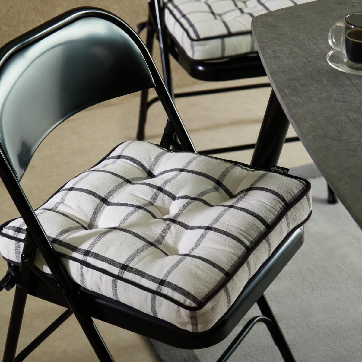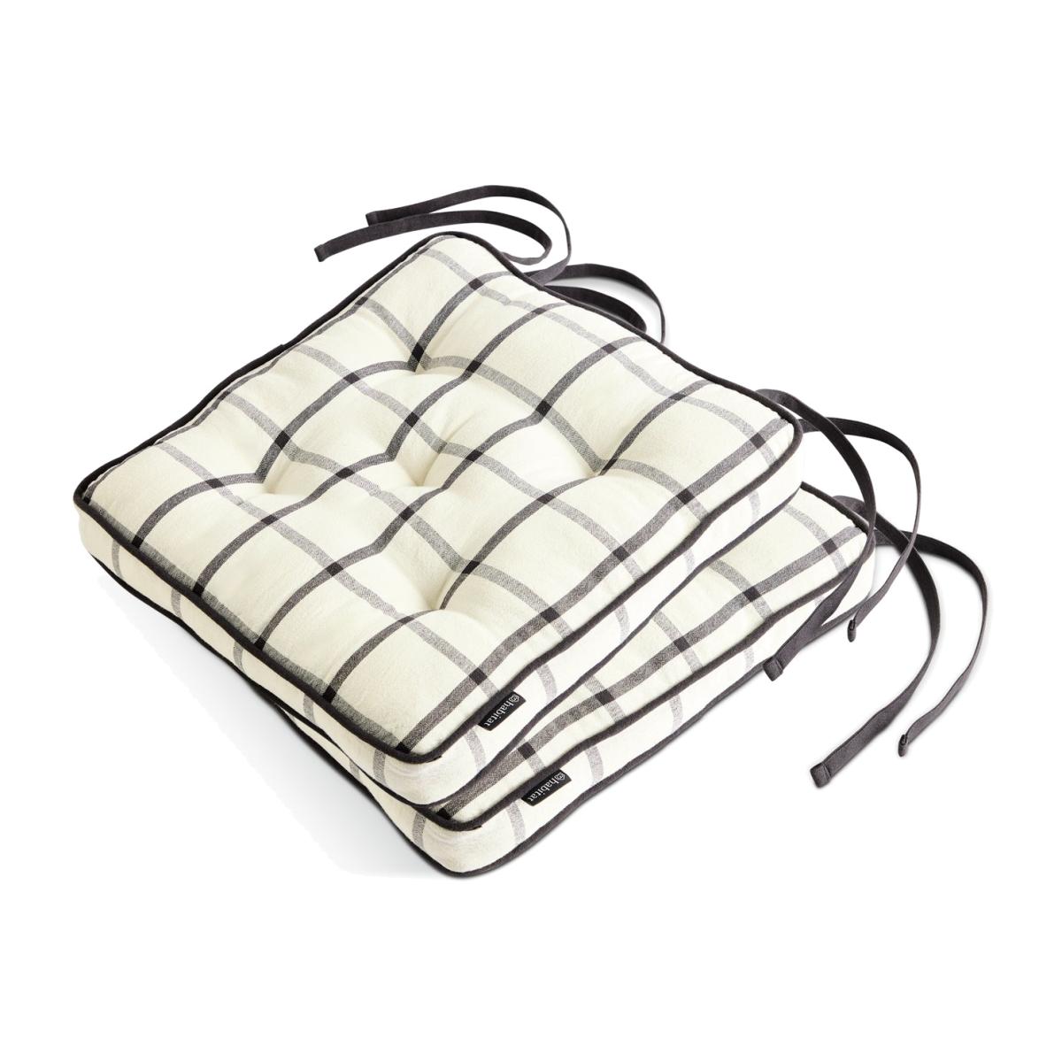 There's no easier way to give wooden chairs an instant upgrade. Made from woven cotton, with a modern monochrome check design, this pair of thickly padded pintuck cushions feel as good as they look. With matching ties to keep them comfortably in place. Cotton. Size W40, L40cm.