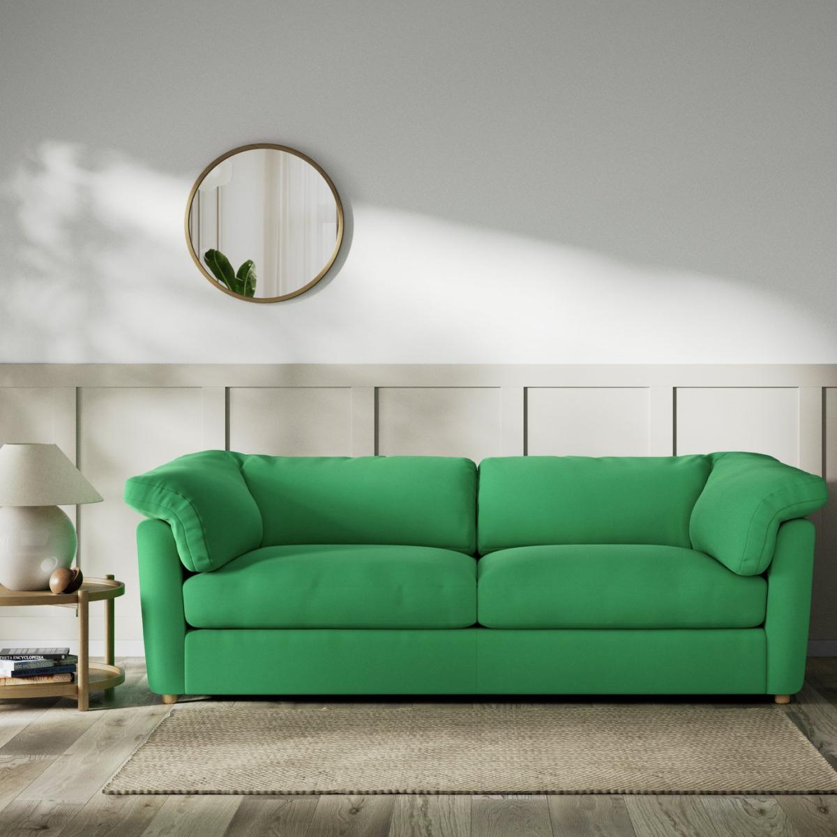 When it's made for you, you know you'll love it. The inviting Wynn 4 seater sofa takes relaxation to the next level. Its generous retro style with wrap around back and arm cushions is stuffed with sink in softness. The supportive foam is topped with a feather filled duvet for a leisurely laid-back design offering ultimate comfort. Upholstered in Aquaclean Chenille, the Wynn combines a soft feel with easy clean durability. Practical as well as sumptuous, the seats, backs and arm pads are all removable for easy plumping and cleaning. Handmade to order in the UK. The Wynn uses quality materials and traditional techniques for furniture that's unique to you. Available in a choice of sizes and fabrics including Aquaclean technology protection built into the yarn, which is easy to clean with just water. Part of the Wynn collection. Material: Made from 100% polyester. Wooden feet - ash. Removable seats with feather and foam filling. Removable cushion(s) with feather filling. Dimensions: Size H75, W242, D105cm. Floor to seat height: 47cm. Depth of seat: 69cm. Height of seat back: 28cm. Width of seating area between arms: 162cm. Height of arm rest: 75cm. Packaged dimensions: Package size H77, W244, D109cm. General information: We do more than deliver your product, we unpack, set it up and take away the packaging. Manufactured in the UK using components sourced globally. Professional clean only. Plump cushions regularly to maintain shape. Manufacturer's 15 year frame guarantee.