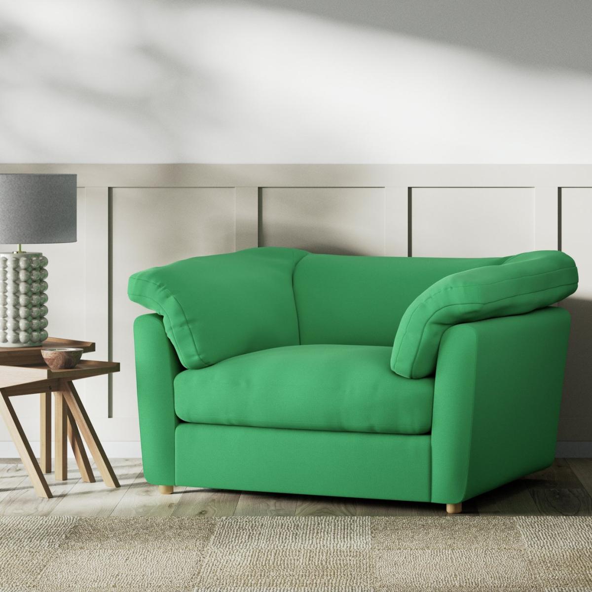 When it's made for you, you know you'll love it. Spacious for one, cosy for two, the inviting Wynn cuddle chair takes relaxation to the next level. Its generous retro style with wrap around back and ARM cushions, is stuffed with sink in softness. The supportive foam is topped with a feather filled duvet for a leisurely laid-back design offering ultimate comfort. Upholstered in Aquaclean Chenille, the Wynn combines a soft feel with easy clean durability. Practical as well as sumptuous, the seats, backs and ARM pads are all removable for easy plumping and cleaning. Handmade to order in the UK. The Wynn uses quality materials and traditional techniques for furniture that's unique to you. Available in a choice of sizes and fabrics including Aquaclean technology protection built into the yarn, which is easy to clean with just water. Part of the Wynn collection. Material: Made from 100% polyester. Wooden feet. Removable seat with feather and foam filling. Removable cushion(s) with feather filling. Dimensions: Size H75, W136.5, D105cm. Floor to seat height: 47cm. Depth of seat: 69cm. Height of seat back: 28cm. Width of seating area between arms: 56.5cm. Height of ARM rest: 75cm. Packaged dimensions: Package size H77, W138.5, D109cm. General information: We do more than deliver your product, we unpack, set it up and take away the packaging. Manufactured in the UK using components sourced globally. Professional clean only. Plump cushions regularly to maintain shape. Manufacturer's 15 year frame guarantee.