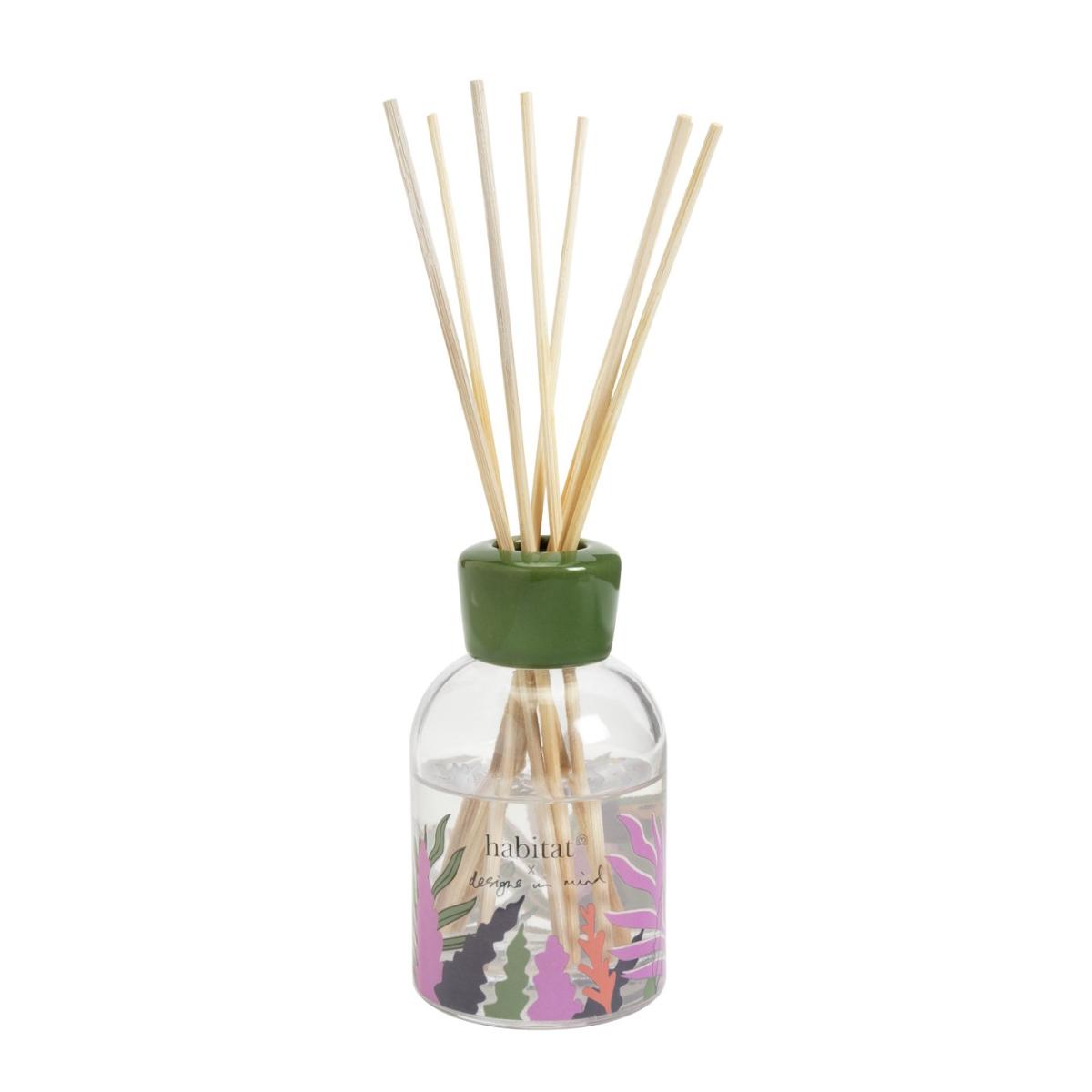 Unwind with Designs in Mind. This beautifully blissful scented diffuser has notes of apple and cardamom. A fruity yet energising fragrance just right for some relaxing me time. The colourful glass bottle with a botanical pattern matches its invigorating aroma in every way. Part of the Habitat and Designs In Mind, imaginative mood enhancing collection. Plant life scent. Scent lasts: 12 weeks. Reed Material: Rattan. Includes diffuser oil, glass bottle & reeds. 90ml capacity. Size H8.2, W6.3, D6.3cm. Designs in Mind.