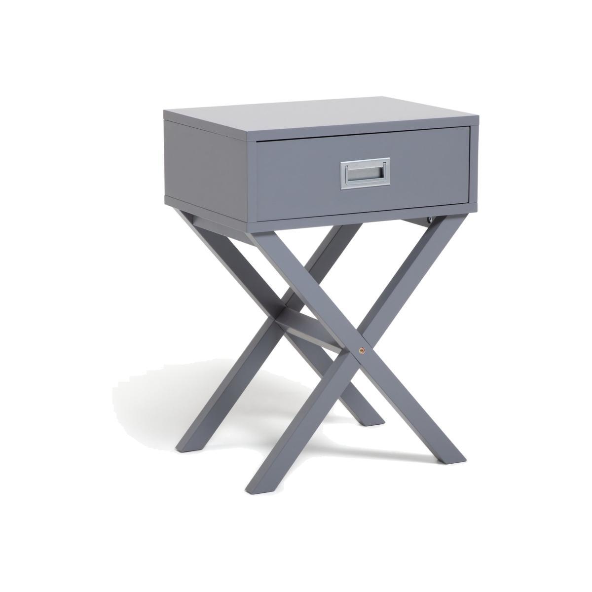 And now for something a little bit different. Our X frame bedside table is a little different from what you'd expect. A smart grey square table with a cool industrial metal handle sits atop of a sturdy X shaped base. The perfect way to modernise your bedroom, or lounge. A hand drawer keeps essentials like phones and tablets or remotes out of sight and the top looks great decorated with a stylish table lamp, pottery or house plant. Made of MDF. Metal handles. Self-assembly - 1 person recommended. Dimensions: Size H55, W40, D30cm. Internal drawer H11.5, W36.5, D28cm. Weight 6kg. Package Dimensions: Package 1 dimensions: H12, W65, D37cm. General information:We are excited to be welcoming some of our favourite HOME products into the Habitat range. Your product may arrive in Habitat or HOME packaging. Manufacturer's 1 year guarantee.
