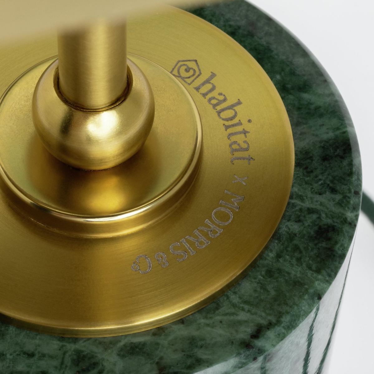 Classic vintage style meets modern convenience. Paying tribute to the iconic bankers table lamp design, our version is also beautifully made with quality materials. The tall cylindrical green base is solid marble, the distinctive wide shade is pure brass. However, there are no switches to fiddle with or cords to pull. A simple touch is all it takes to turn the light on and off. An elegant contemporary piece with traditional values. Habitat x Morris & Co. A celebration of British design heritage inspired by the fundamentally important principles of the iconic William Morris. To produce authentically timeless pieces that are the epitome of utility and beauty. Part of the Habitat x Morris & Co. Collection. Dimensions: Overall size H40, W30, D30 cm. Diameter 30cm. Shade size H10, D30cm. Diameter of base 8cm. Cord length 1.8m. Bulb Information: Bulbs required 2 x classic. Capsule G9integrated LED bulb(s)(not included). Recommended maximum wattage: 5 watts. LED bulb only. General Information: Shade colour: brass. Base colour: green. Shade material: metal. Base material: marble. In-line switch. IP rating 20. Minimal assembly. This lighting product is a class 2 fitting. Manufacturer's 1 year guarantee.