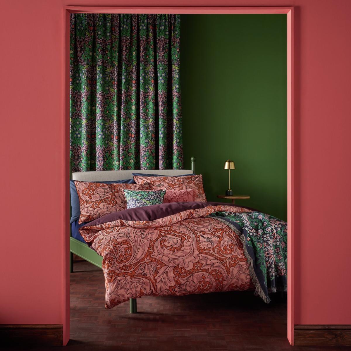 This bedding set features the iconic Batchelors Button print by William Morris, in a disruptive colour palette of deep orange and rose pinks. Finished with a reverse and piped edging in a contrasting deep purple colourway. Habitat x Morris & Co. A celebration of British design heritage with a fresh take on the iconic prints of William Morris. Part of the Habitat x Morris & Co. Collection. Fabric finish: printed. 100% cotton. 180 thread count. Set includes 1 duvet cover and 2 pillowcases. Bed size: double. Length 200cm, Width 200cm. Buttons for fastening. Standard pillowcase (s). Pillowcase length 75cm, Width 50cm. Machine washable. Suitable for tumble drying.