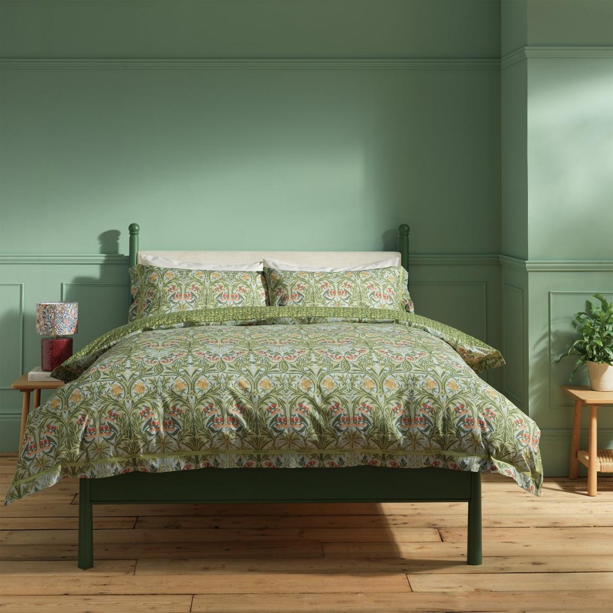 Our new Bluebell print bedding made from 180 thread count 100% cotton. The front features an interwoven series of leaf work with a 2-colour reverse in the Rosehip print, including a flannel edge with selvedge detailing. Habitat x Morris & Co. A celebration of British design heritage with a fresh take on the iconic prints of William Morris. Authentically timeless pieces designed for the future. Part of the Habitat x Morris & Co. Collection. Fabric finish: printed. 100% cotton. 180 thread count. Set includes 1 duvet cover and 1 pillowcase. Bed size: single. Length 200cm, Width 135cm. Buttons for fastening. Standard pillowcase (s). Pillow case length 75cm, Width 50cm. Machine washable. Suitable for tumble drying.