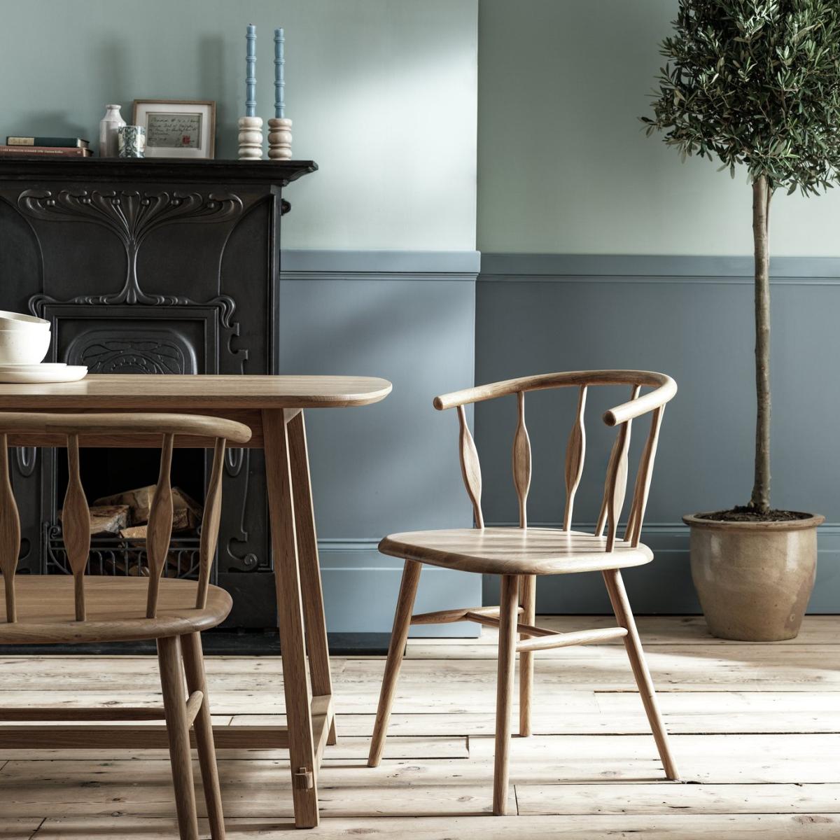 Our Canterbury dining chair is a beautiful, honest and hand finished piece of furniture from Habitat x Morris & Co. Designed to be cherished by generations, who value the skill and detailed craftsmanship invested in this Arts & Craft inspired dining chair. In solid oak, it features decorative flattened spindles, a comfy curved backrest, turned legs and frame bracing. Naturally pleasing. Habitat x Morris & Co. A celebration of British design heritage inspired by the fundamentally important principles of the iconic William Morris. To produce authentically timeless pieces that are the epitome of utility and beauty. Part of the Habitat x Morris & Co. Collection. Chair: 1 chair supplied. Size H77, W57.5, D54cm. Seat height 45cm. Oak frame with oak legs. Solid wood seat pad. Fully assembled -. Max user weight per chair 110kg. Individual chair weight 6.25kg. Wipe clean with a soft cloth. Package Dimensions: Chair package size: H81.5, W60, D56.5cm. General information: Manufacturer's 1 year guarantee. FSC certified meaning the materials used for this product are responsibly sourced.