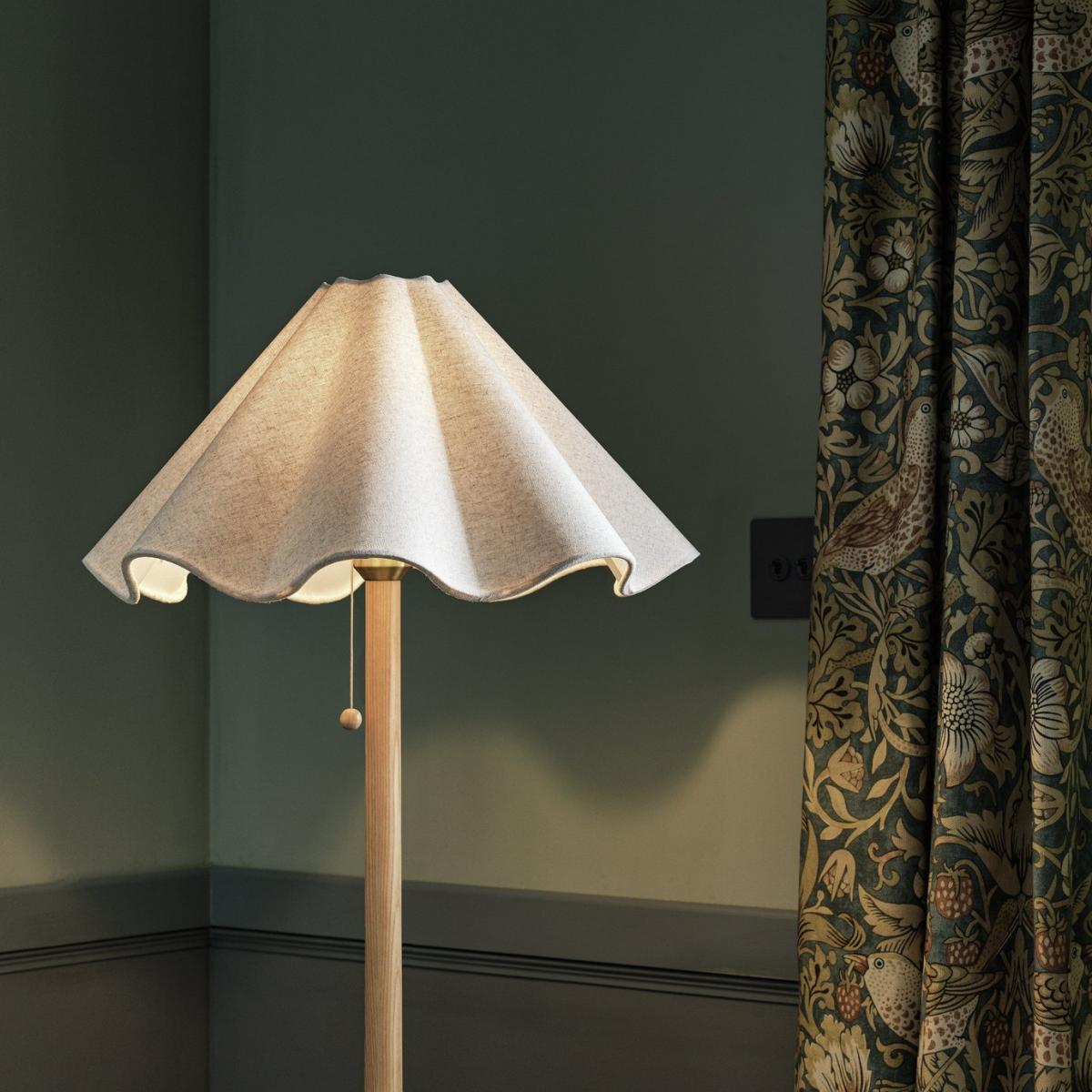Shades of arts and crafts. Softly undulating waves of cream linen give this shade a relaxed aesthetic. And it can be used with a ceiling light as well as a lampstand to give your space a freshly coordinated glow. Habitat x Morris & Co. A celebration of British design heritage inspired by the fundamentally important principles of the iconic William Morris. To produce authentically timeless pieces that are the epitome of utility and beauty. Part of the Habitat x Morris & Co. Collection. Made from linen. Size H23cm, Diameter 45cm. Recommended maximum bulb wattage 10 watts. Fully assembled. Easy fit shade.