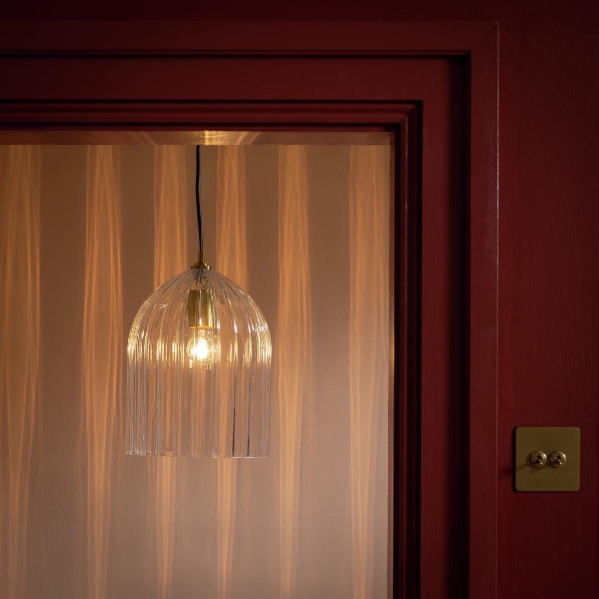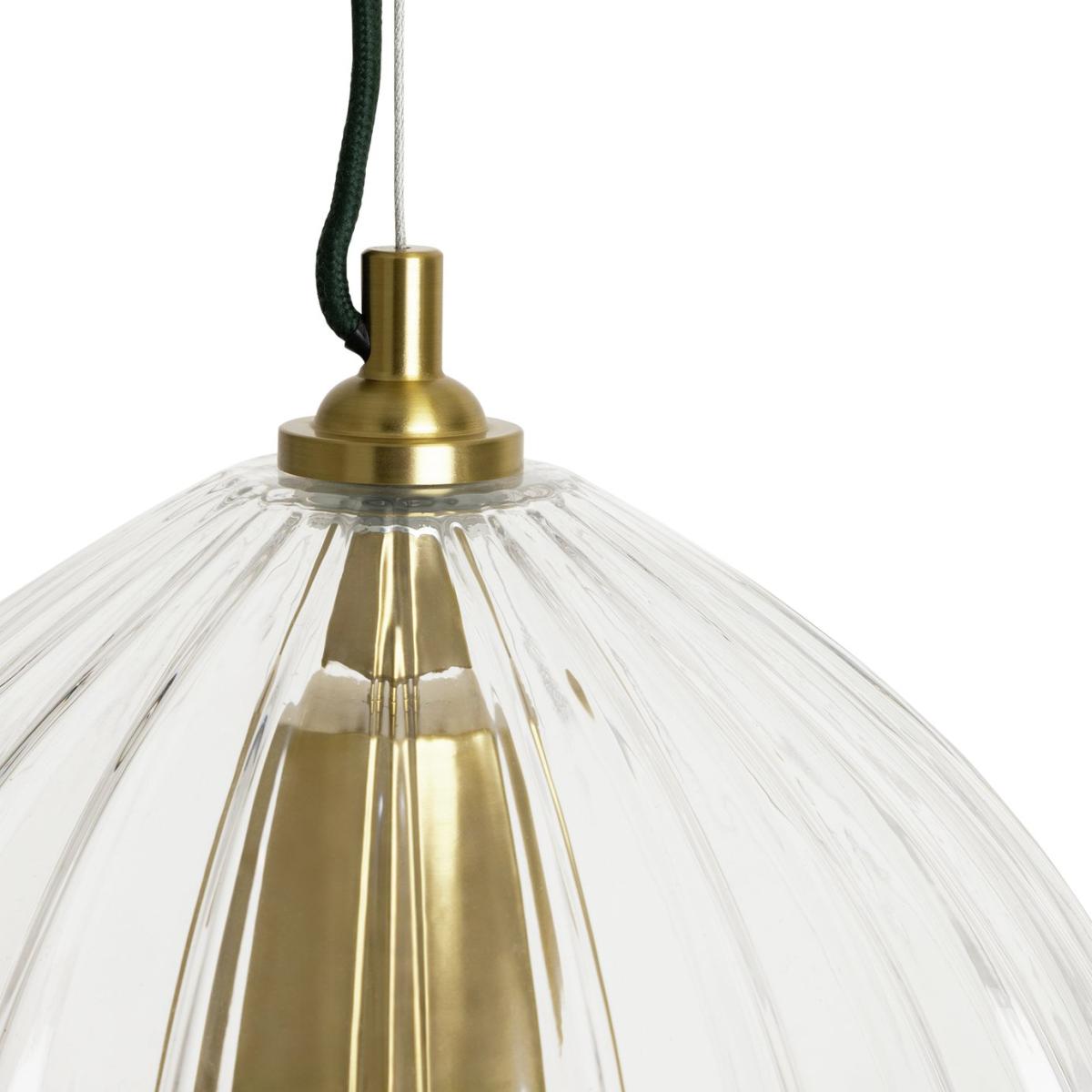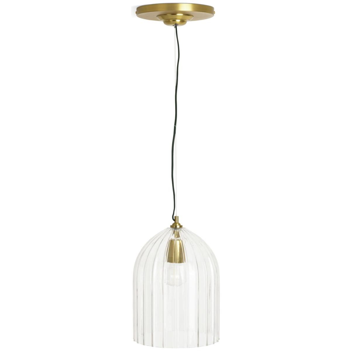 Expressive modern lighting that embraces the qualities of enduring design. This pendant light features a deeply ribbed glass cloche with a brushed brass rose. A re-imagining and modern nod to the distinctive and lasting achievements of the Arts & Craft movement. Exclusively from Habitat x Morris & Co. Habitat x Morris & Co. A celebration of British design heritage inspired by the fundamentally important principles of the iconic William Morris. To produce authentically timeless pieces that are the epitome of utility and beauty. Part of the Habitat x Morris & Co. Collection. Dimensions: Size H120, W25, D25cm. Diameter 25cm. None adjustable drop. 120cm drop. Bulb Information: Bulbs required 1 x GLS E27 GLS bulb LED (not included). Recommended maximum wattage: 13 watts. Can not be used with a dimmer switch. LED bulb only. General Information: 40% metal,55% glass,5%plastic. IP rating 20 - not suitable for bathroom use. Weight: 2.87kg. Minimal assembly. Product is mains powered plug in. This lighting product is a class 1 fitting. Manufacturer's 1 year guarantee.